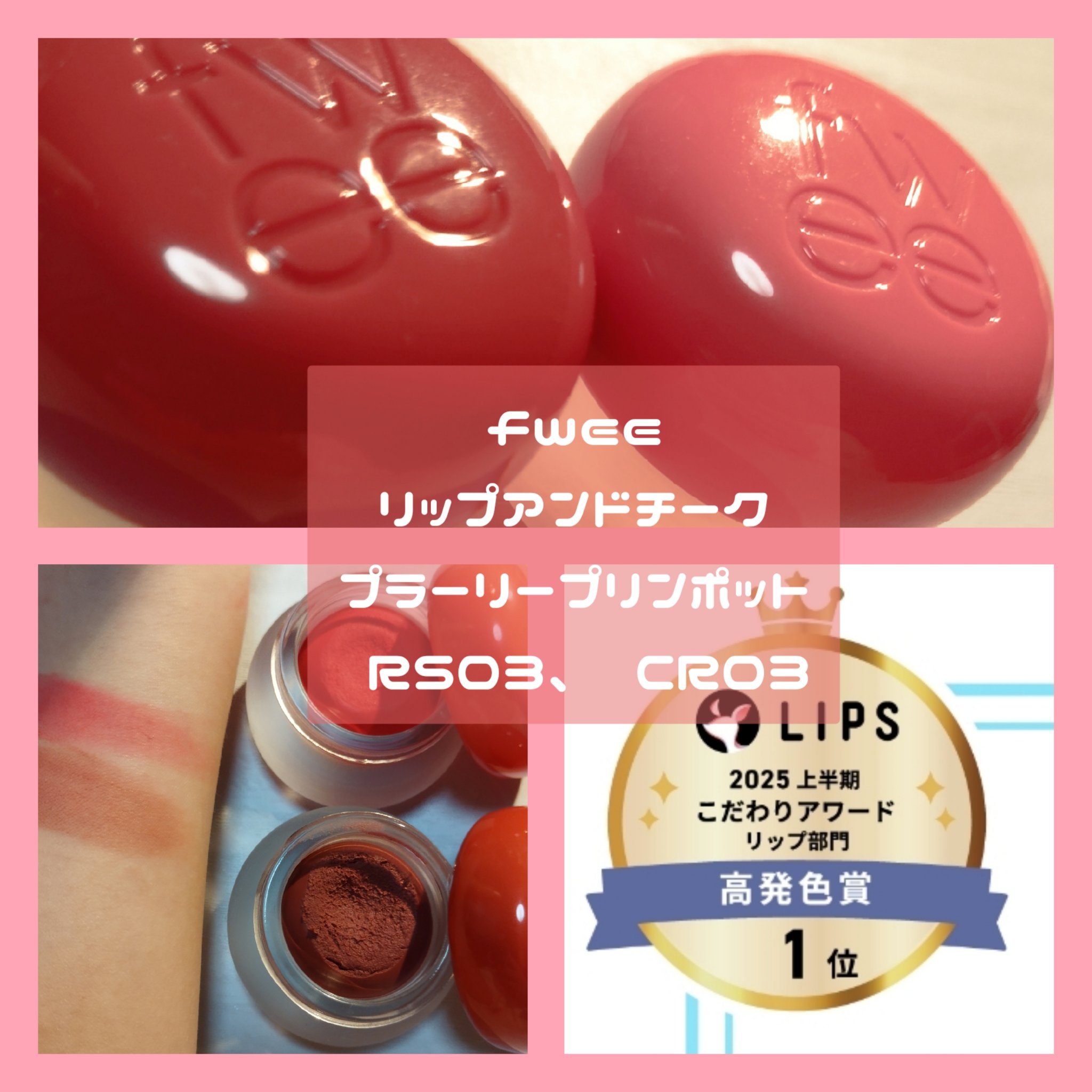 今年最後のメガ割で最初に購入したのはずっと気になってたfweeの リップアンドチーク ブラーリープリンポット🫶🏻꙳゛ 色味はND04とRS03を選びました! おまけもとっても可愛くて🫶🏻꙳゛