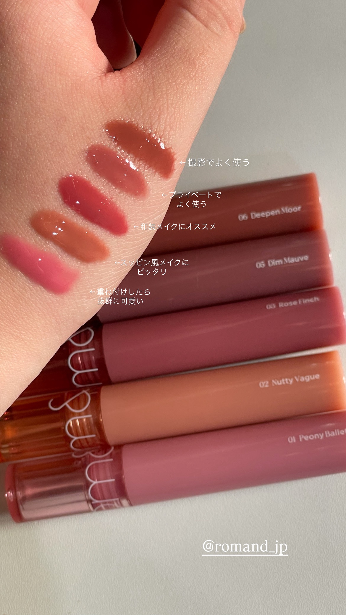 ロムアンドのアイシャドウパレットは発色も良く、ラメもしっかりしていてナチュラルな色味なのに華やかになりやすいです⭐︎ プチプラでアイシャドウパレット探している方韓国っぽいメイクにしたい方は是非ロムアンドのアイシャドウパレット買ってみて下さい♡