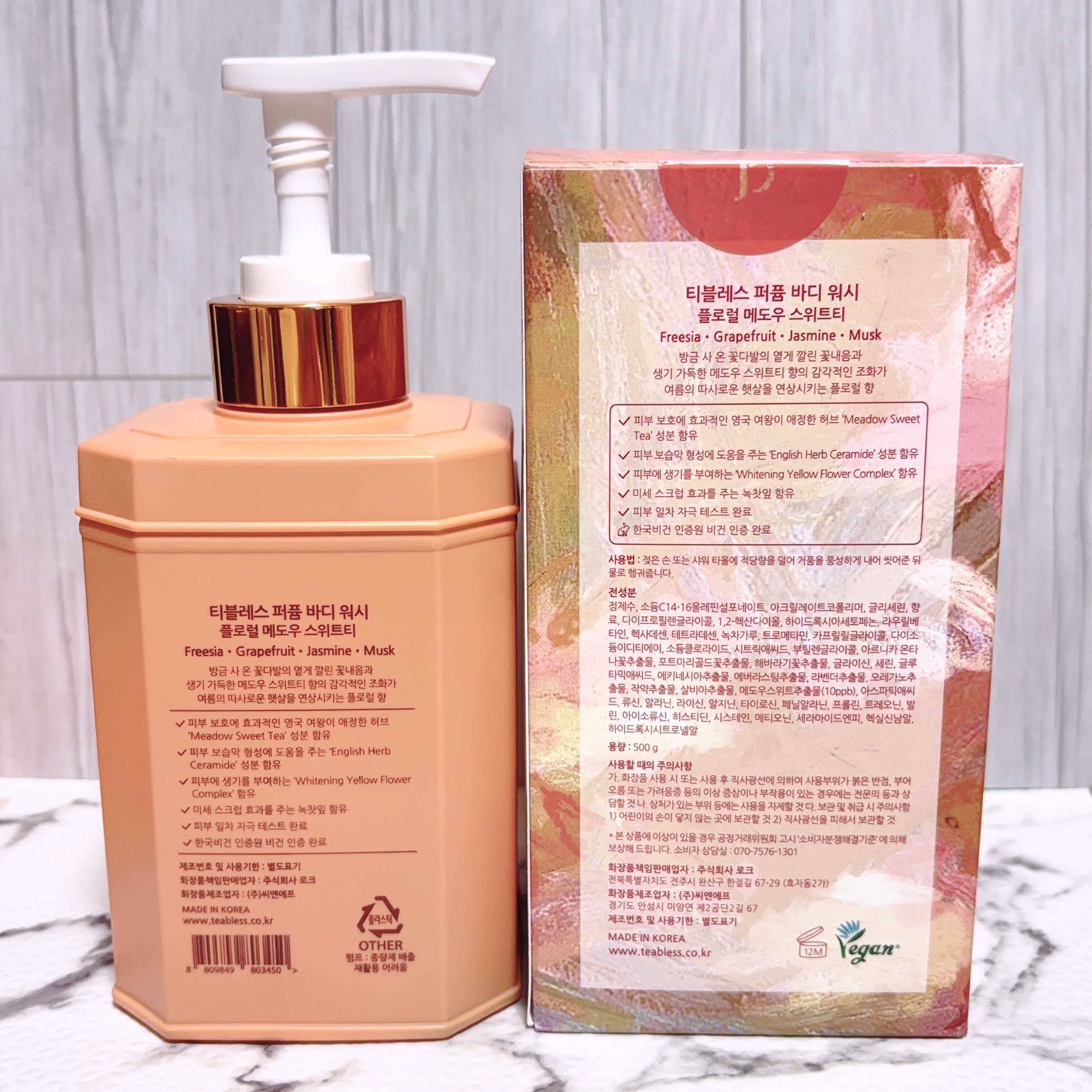 𓆸TEABLESSフローラルメドウスイートティー・パフュームボディソープ紅茶缶のような可愛らしいパッケージが特徴のティーブレス♡ティーブレスのすべての製品は既成香料を使用せず、シグネチャー茶(TEA)成分が持っている本来の香りにパフュームを調...