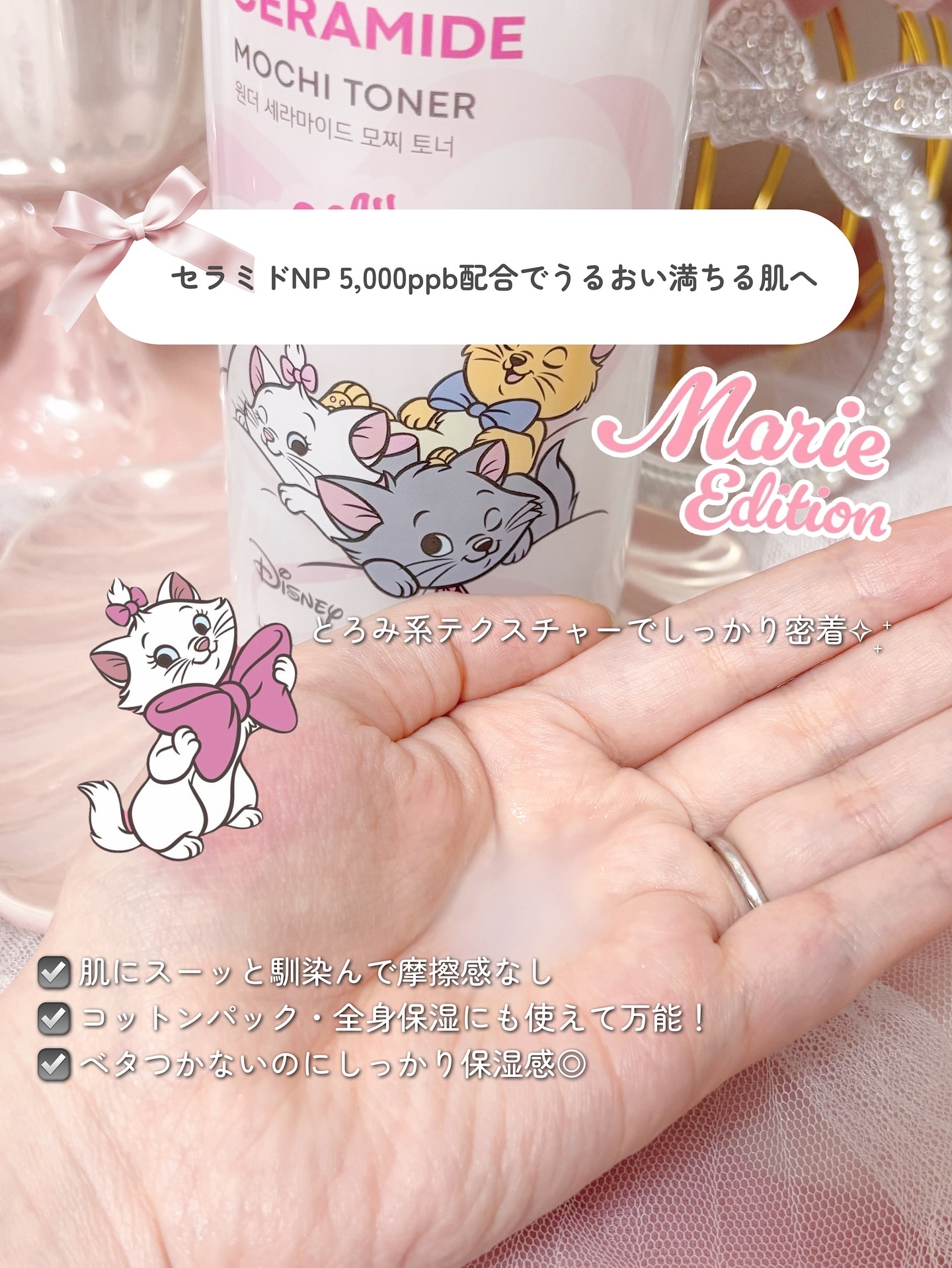 🧴うるおい重視で選ぶならコレ♡TONYMOLYワンダーセラミドモチトナー(*今だけのマリーちゃん限定パケ)まるでインテリアみたいに可愛い化粧水、発見しちゃいました🐈🤍お肌のバリア機能をサポートしてくれる"セラミド*¹"配合で、重たすぎず朝のメ...