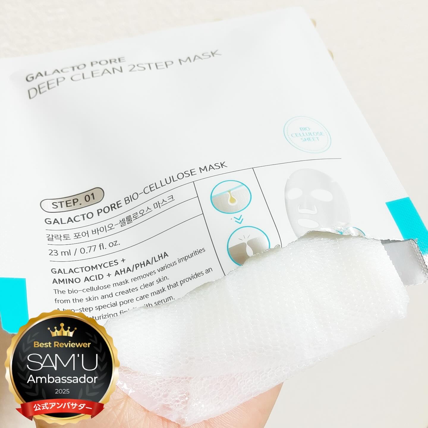 SAM'U(サミュ)公式アンバサダーとしての投稿です。ガラクトポア2ステップマスク✨ガラクトシリーズからスペシャルケアマスクが登場!マスクパック・セラムで、2ステップケア💡マスクパックは、自然由来のバイオセルロース素材だそう!シートがお肌にぴ...
