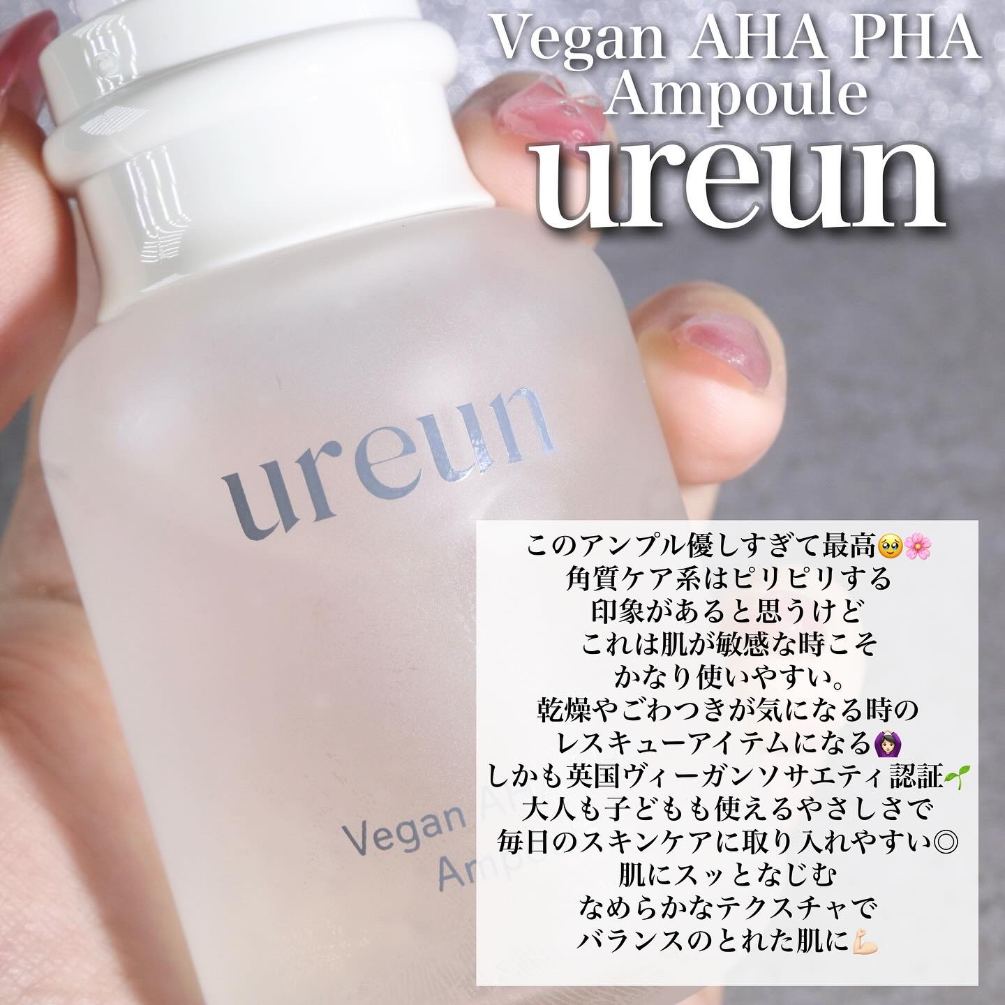 #ureun#ユアルン【#ヴィーガンアハパハアンプル】AHA・PHA配合肌のキメを整えて、うるおいを与えすこやかな肌印象を保つアンプルさっぱりと軽いテクスチャー肌にさらっとなじんでベタベタせず、後のスキンケアの邪魔をしないから使いやすい◎程良...
