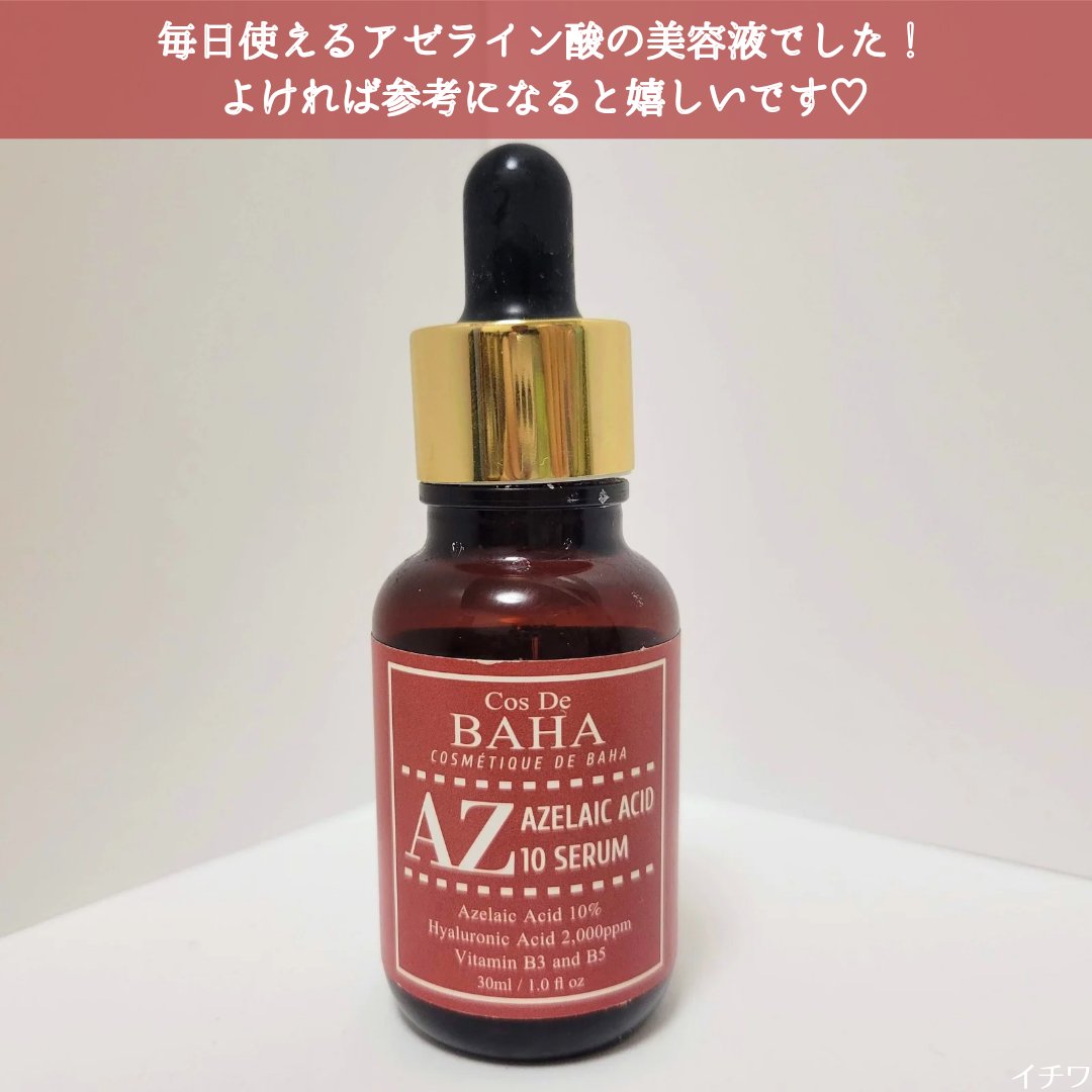 最近、肌荒れが気になるので本格スキンケアブランドCosDeBAHA(コスデバハ)@cosdebaha_japan注目の新作アイテム!💓AZアゼライン酸15%美容液❤️を使いはじめました✨赤み、ニキビ、肌荒れが気になる方に♡ニキビの治療薬として...
