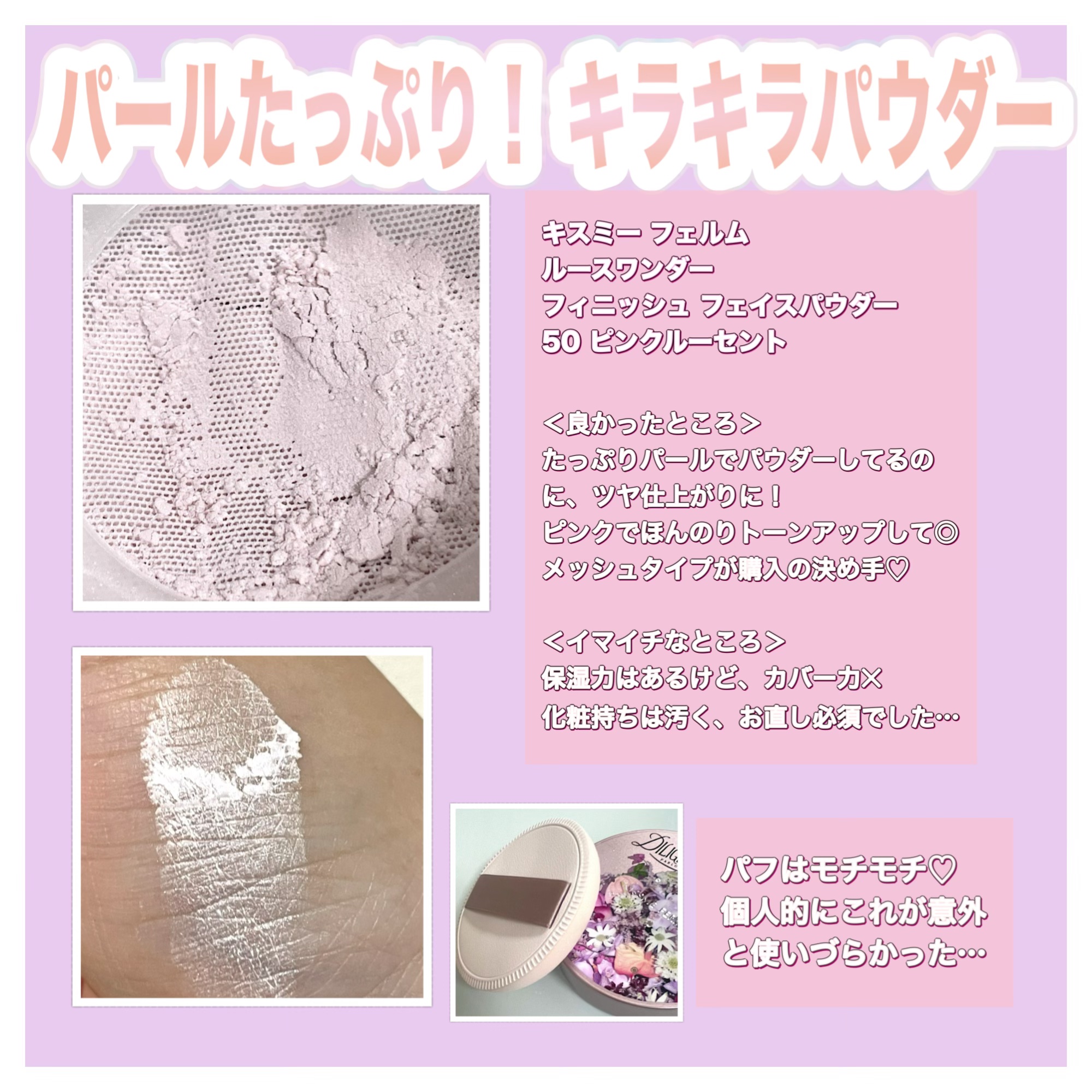 ♡キスミーフェルムキスミーフェルムルースワンダーフィニッシュSP50ピンクルーセント¥2,530塗った後のラメ感とパウダーの色が好みで購入しました🫶🏻#パウダー #キスミーフェルム...
