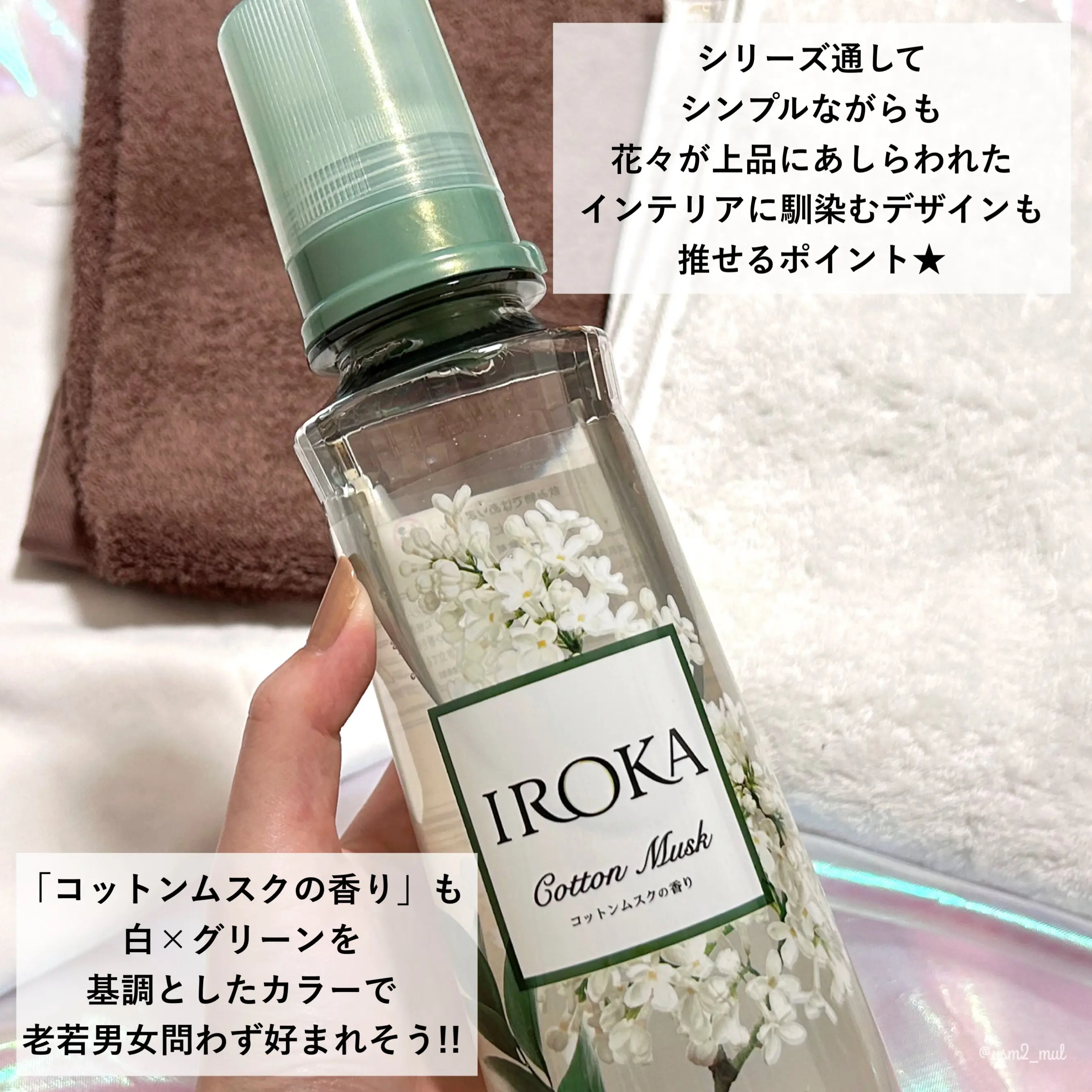 \洗たくするだけで香水級!/いい匂いの人になれる柔軟剤💐🤍IROKA柔軟仕上げ剤コットンムスクの香り25年6月にウエルシアグループ限定で「クリーンビューティー」をテーマにした、コットンムスクの香りが新発売!🆕´-自然体だけどどこか印象に残る香...