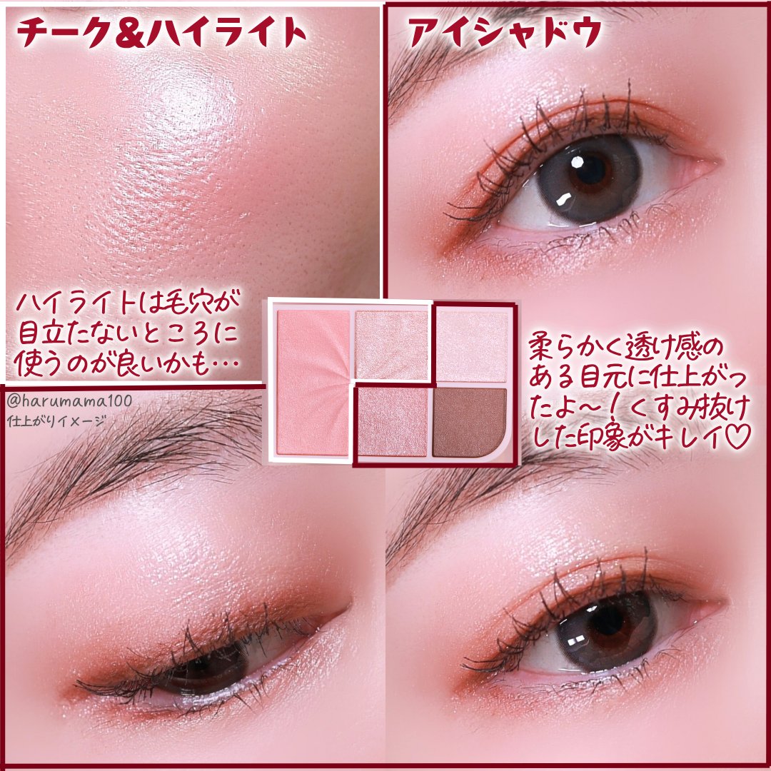 - 頬&目元のメイクが1つで完成するパレット。 チーク・ハイライト・アイシャドウが1つのパレットにin! 使いやすい”カラー×質感”で誰でも簡単にメイク完成♪ 自然な奥行を作りやすいトーンを揃えた濃淡カラー。頬と目元の色味を合わせて統一感アップ! 発色や仕上がりが絶妙に異なる5質感パウダー。しっとりした粉質でくすみにくく、メリハリ立体感を演出! チップ・ブラシ付。 (ふんわり色づく毛量たっぷりミニブラシ・しっかり色づく肌当たり柔らかなチップ) 01 ピュアコーラル:柔らかいコーラルベージュのウォームトーン。温かみのある優しい印象に。 02 クラッシーピンク:上品なくすみピンクのクールトーン。大人っぽくて可愛い印象に。