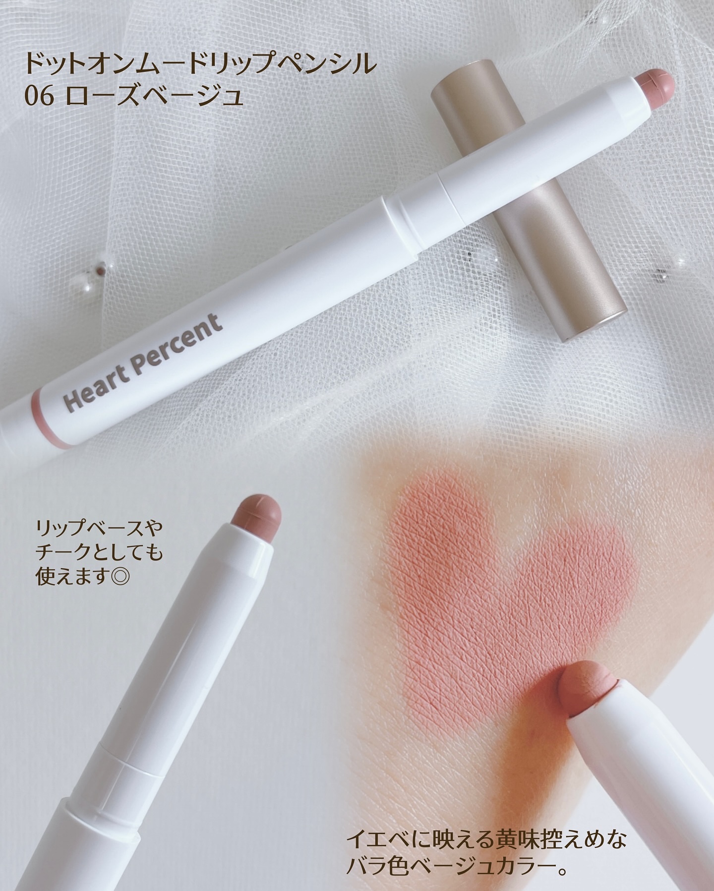 ハートパーセントのマルチに使えるリップペンシル👼🏻✨🌟HeartPercent ハートパーセントドットオンムードリップペンシル[06ローズベージュ]✅肌、唇のトーンに合わせてナチュラルにオーバーリップを演出✅ムラになりにくいテクスチャーで、誰...