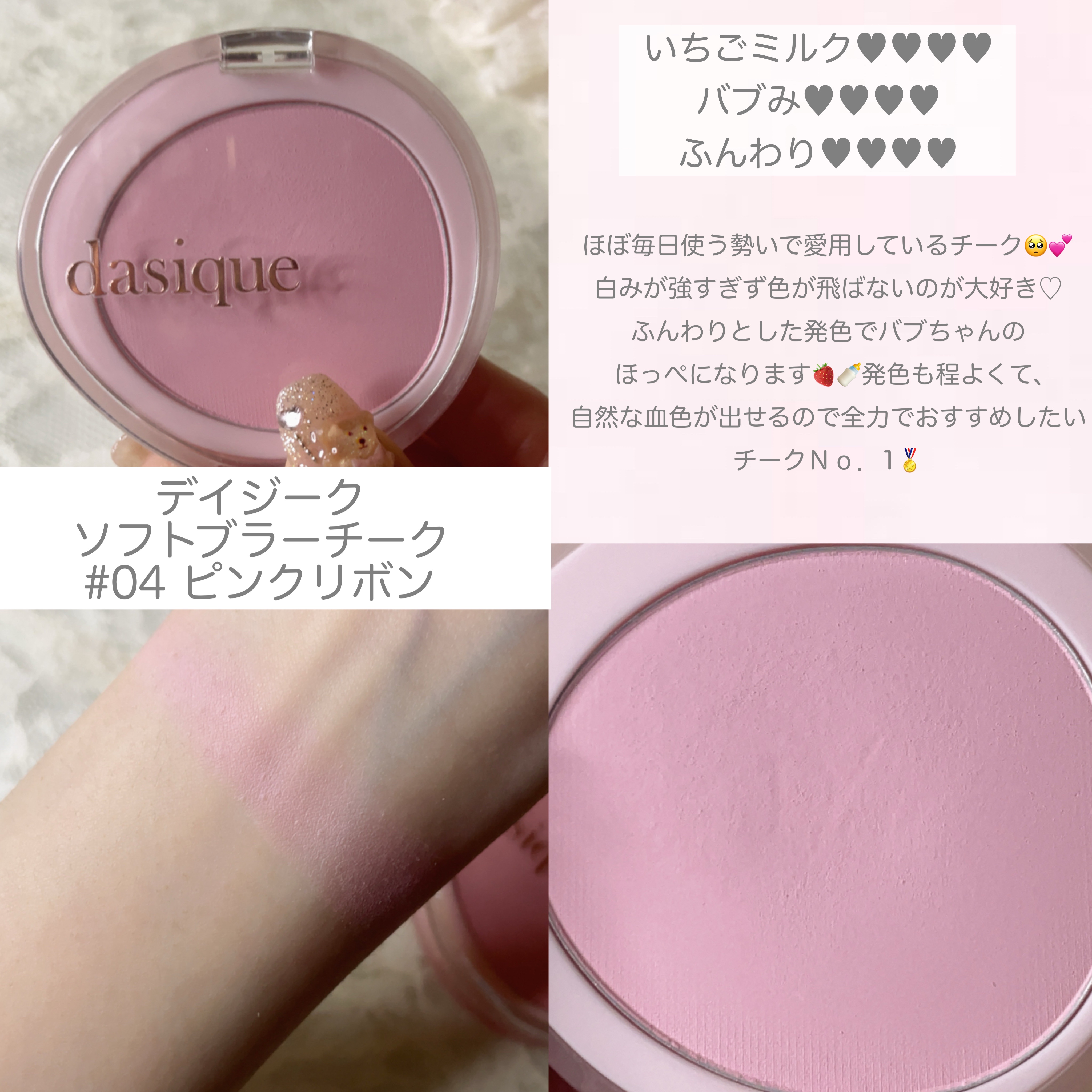 あまりにも可愛すぎてずっと見てられる パッケージ😭🎀 ラメ感が強めで頬がキラキラになります デイリー使いだとマットチークと組み合わせてラメ感を少し抑えるのが個人的にはおすすめです💘 なによりパッケージが超絶可愛いから持ってるだけでテンションが上がる⤴️⤴️⤴️