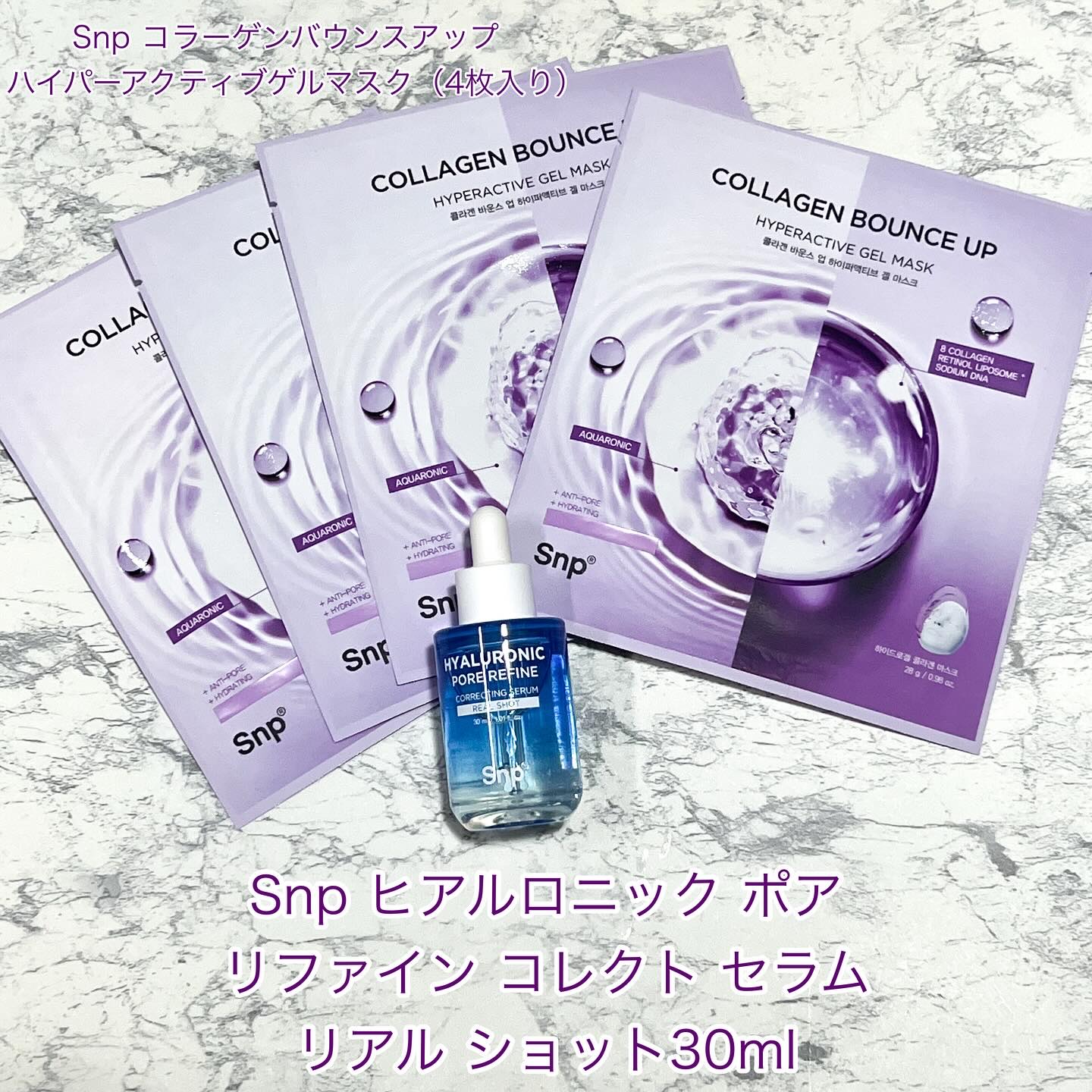 Snpコラーゲンバウンスアップハイパーアクティブゲルマスク✨Snpヒアルロニックポアリファインコレクトセラムリアルショット✨ロフトで買える!韓国コスメブランド、Snpより。PDRN美容液で毛穴皮脂水分弾力のケアをサポート!ロフトKコスメフェス...