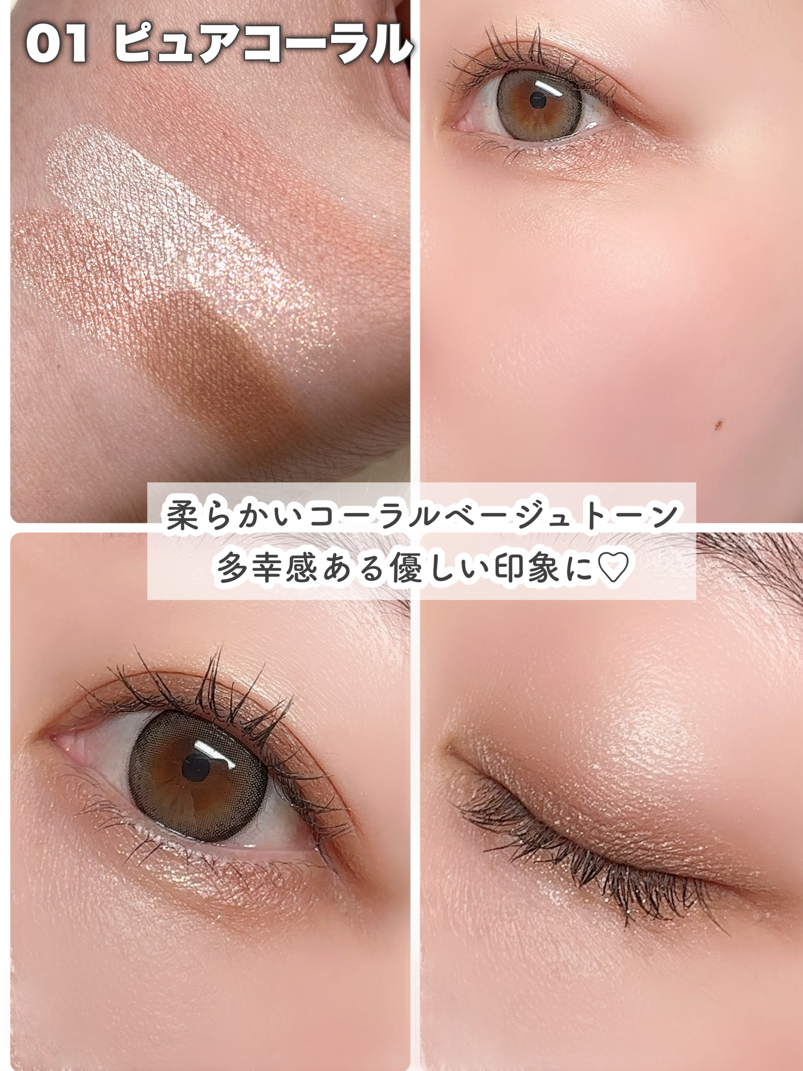 - 頬&目元のメイクが1つで完成するパレット。 チーク・ハイライト・アイシャドウが1つのパレットにin! 使いやすい”カラー×質感”で誰でも簡単にメイク完成♪ 自然な奥行を作りやすいトーンを揃えた濃淡カラー。頬と目元の色味を合わせて統一感アップ! 発色や仕上がりが絶妙に異なる5質感パウダー。しっとりした粉質でくすみにくく、メリハリ立体感を演出! チップ・ブラシ付。 (ふんわり色づく毛量たっぷりミニブラシ・しっかり色づく肌当たり柔らかなチップ) 01 ピュアコーラル:柔らかいコーラルベージュのウォームトーン。温かみのある優しい印象に。 02 クラッシーピンク:上品なくすみピンクのクールトーン。大人っぽくて可愛い印象に。