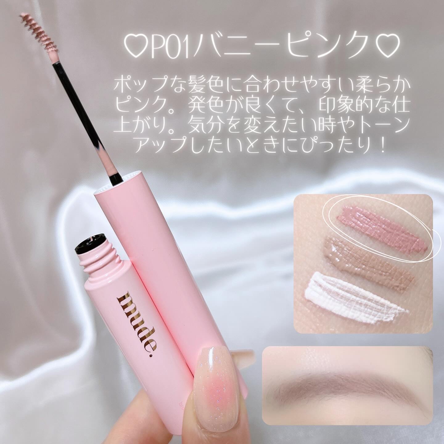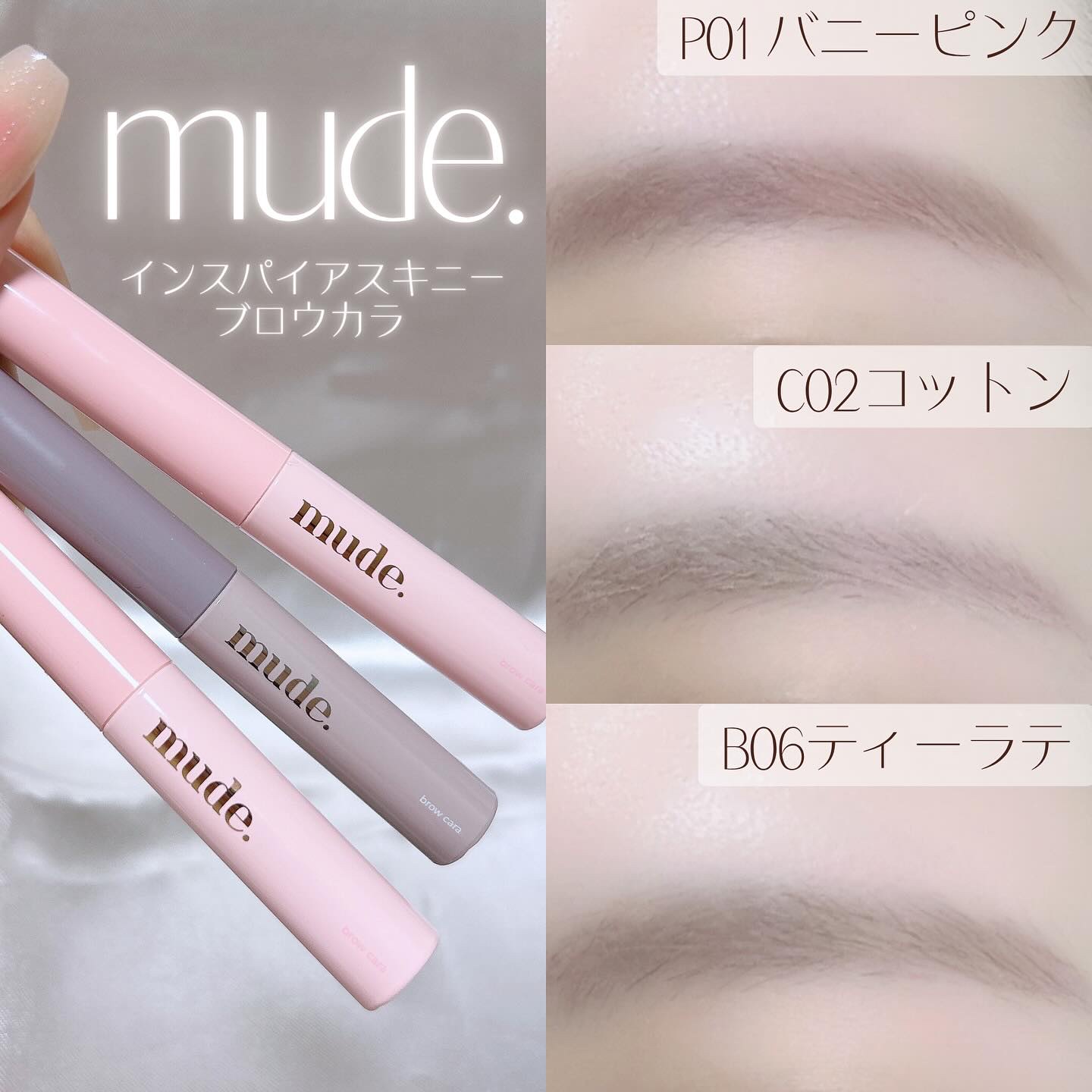 ✼••••✼mude.インスパイアスキニーブロウカラー✼••••✼大人気のアイブロウマスカラに新色登場✨1本1本自然なブロウカラーリングでムードバランスを合わせてくれるよ!ヘアカラーやムードに合わせて選べるカラーP01バニーC02コットン(ブ...