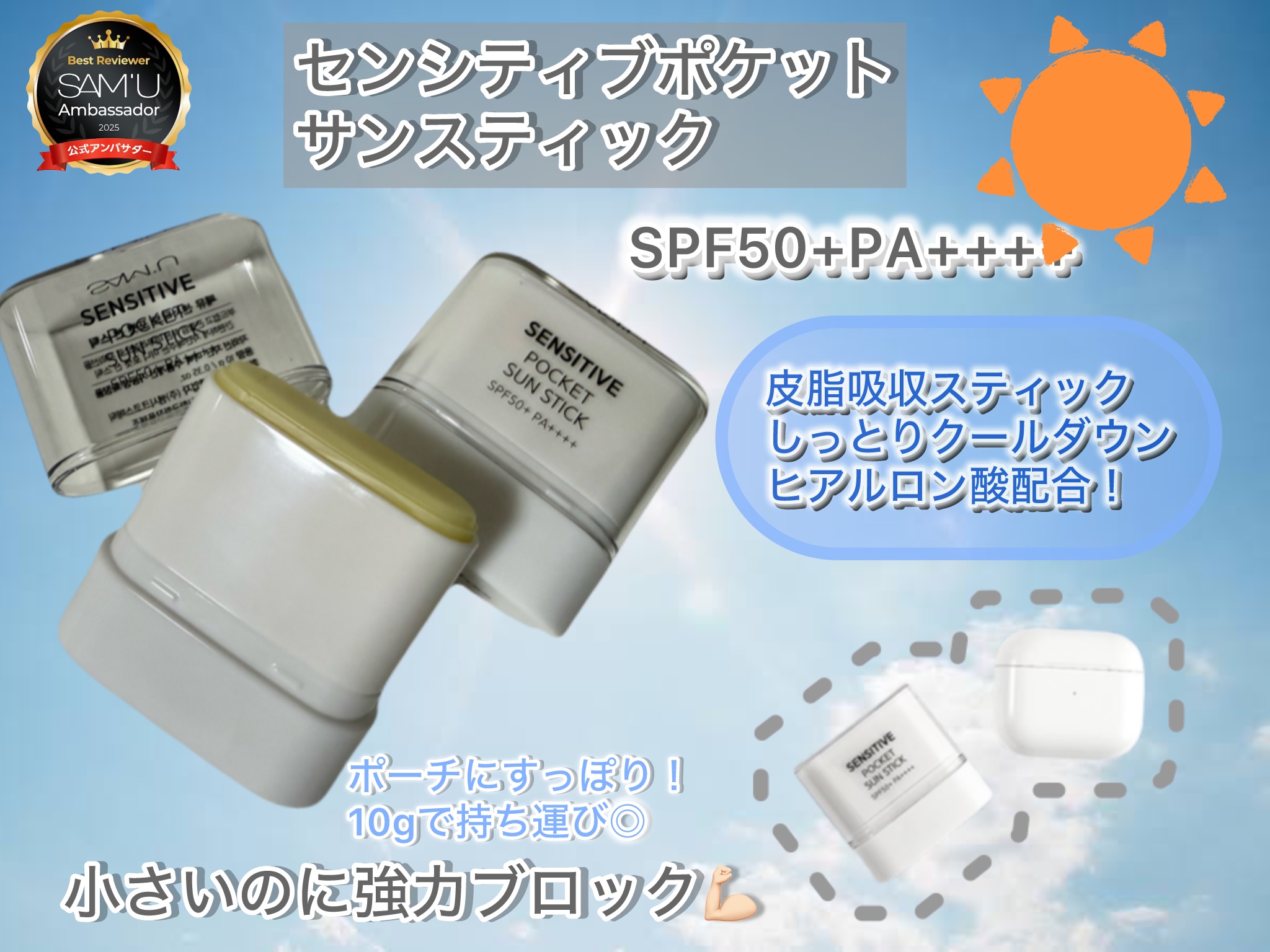 SAM'U公式アンバサダーとして活動中のたりです☺️今回のご紹介は小さいのにしっかりUVケアできちゃうSAM'Uセンシティブポケットサンスティック✨ポケットサイズの可愛い日焼け止め🩷どこにでも持っていけるのでいつでも簡単に紫外線ブロック‼︎2...