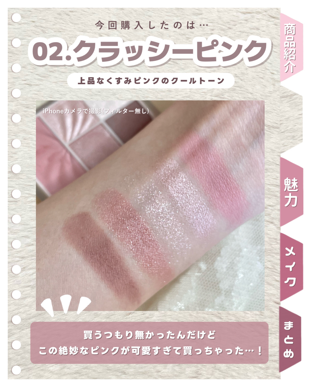 【セザンヌ新作♡マルチに使える上品クラッシーピンク】CEZANNEフェイスアイパレット02クラッシーピンク847円(税込)セザンヌから登場したマルチパレット!早くも大人気だよね〜〜!!アイシャドウ・チーク・ハイライトがこのパレひとつにセットさ...