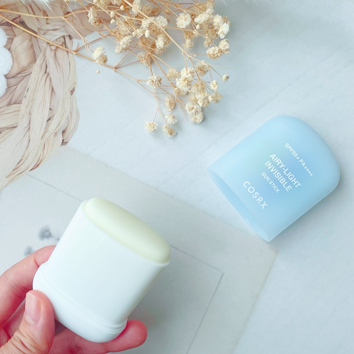 COSRXエアリーライト透明UVスティック空気のように軽くさらっとブラーリング︎︎☁無重力UVケア🤍SPF50+PA++++。ジンクPCA、ナイアシンアミド、セラミドNP、ヒアルロン酸、酢酸トコフェロール、α-ビサボロール、アロエベラ葉...