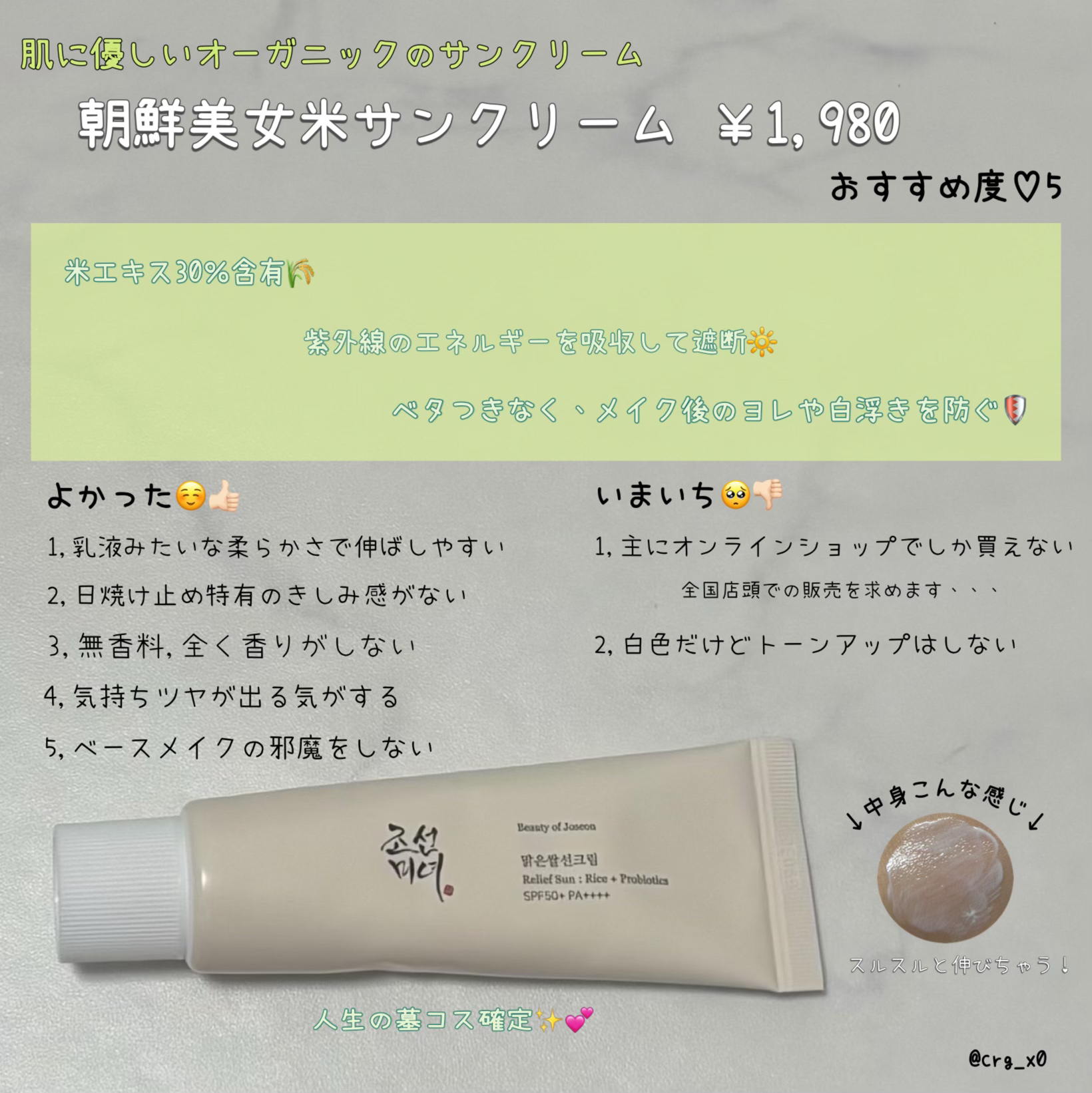 もっと見るおすすめアイテムBeauty of Joseon×日焼け止めクリーム