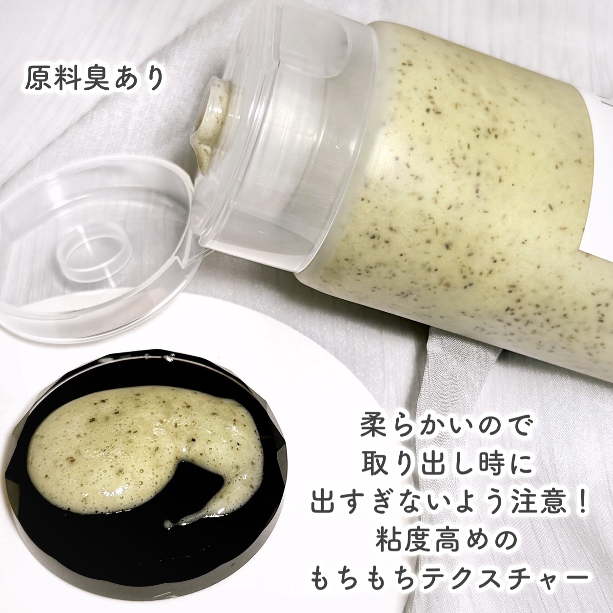 - <120ml> 水、グリセリン、ミリスチン酸、水酸化K、パルミチン酸、ステアリン酸、シリカ、ココイルメチルタウリンNa、1,2-ヘキサンジオール、ココイルグリシンK、チャ葉、ステアリン酸グリセリル、ステアリン酸PEG-100、ポリアクリル酸Na、DPG、メリアアザジラクタ葉エキス、メリアアザジラクタ花エキス、(アクリレーツ/アクリル酸アルキル(C10-30))クロスポリマー、ヒドロキシアセトフェノン、香料、BG、コクシニアインディカ果実エキス、ツボクサ葉/茎、イライト、エチルヘキシルグリセリン、ナス果実エキス、カオリン、カミメボウキ葉エキス、サンゴモエキス、ウコン根エキス、モンモリロナイト、水溶性プロテオグリカン、マカデミア種子油、トリ(カプリル酸/カプリン酸)グリセリル、水添ホスファチジルコリン、プロパンジオール、ポリソルベート20、PG、レチノール、酢酸トコフェロール、エタノール、カラスムギ芽エキス、ガラクトミセス培養液、アブラナステロールズ、PEG-5アブラナ種子ステロール、ヒアルロン酸Na、ツボクサエキス、セテス-3、セテス-5、コレステロール、チャ葉エキス、ドクダミエキス、ビワ葉エキス、アンザンジュエキス、セチルリン酸K、カプリリルグリコール、ヒアルロン酸ヒドロキシプロピルトリモニウム、加水分解ヒアルロン酸、ミドリハッカエキス、ティーツリー葉エキス、アセチルヒアルロン酸Na、EDTA-2Na