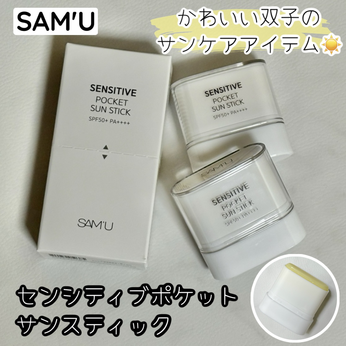 SAM'UセンシティブポケットサンスティックSPF50+PA++++ポケットやポーチにすっぽり入るミニサイズで持ち運びも便利なサミュのサンスティック🌻ˊ˗パウダー成分も配合されてるから皮脂も吸着してくれるのが優秀すぎ.ᐟ.ᐟヒアルロン酸¦アロ...