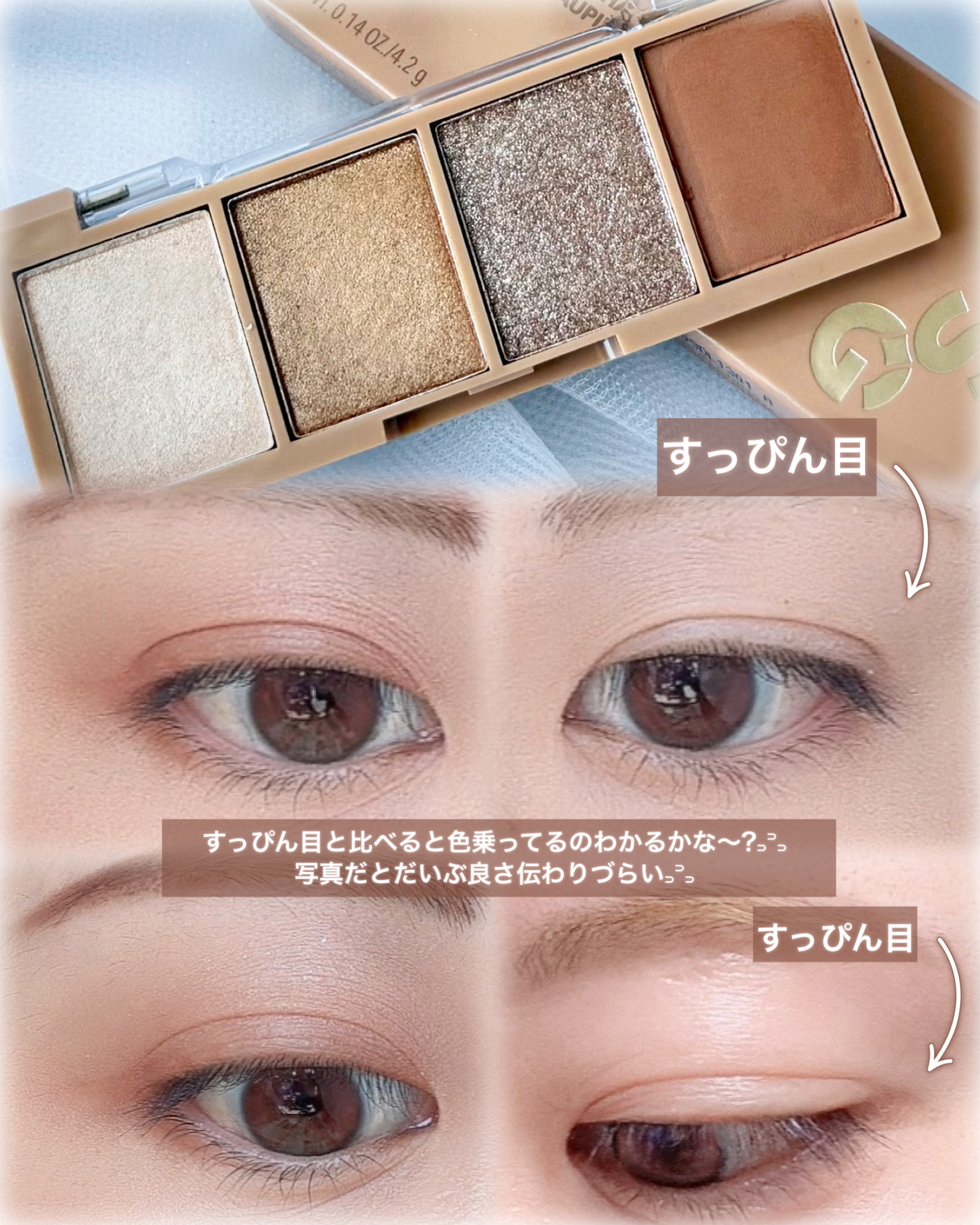 パイプ椅子!?携帯スタンド!?アイシャドウ!?𓊆ྀིサンフィール𓊇ྀི✔︎𝐌𝐘𝐘携帯スタンド 𝟒色アイシャドウ⑅𝐫𝐞𝐯𝐢𝐞𝐰⑅思った以上に良かった発色...👀💡ˊ-粉質も悪くなかったしラメに関してはめちゃくちゃ繊細で綺麗だった👏🏻!締め色も中...