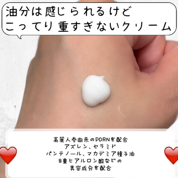 最近話題のサーモン【PDRN】を良く聞くと思いますが、VTのPDRNは高麗人参由来のPHYTOPDRN®Panaxを配合✨ 【PDRNエッセンス100】はPDRNの他にも、セラミド・グルコロン酸・パンテノール・スクワラン・アラントインなどの保湿力に特化した成分配合で使用後は肌がしっとり保湿される感じ✨ クリームの方もやわらかいテクスチャーで伸ばしやすかった🎵 塗った後は肌がもちっとしてツヤツヤになる感じ🩵