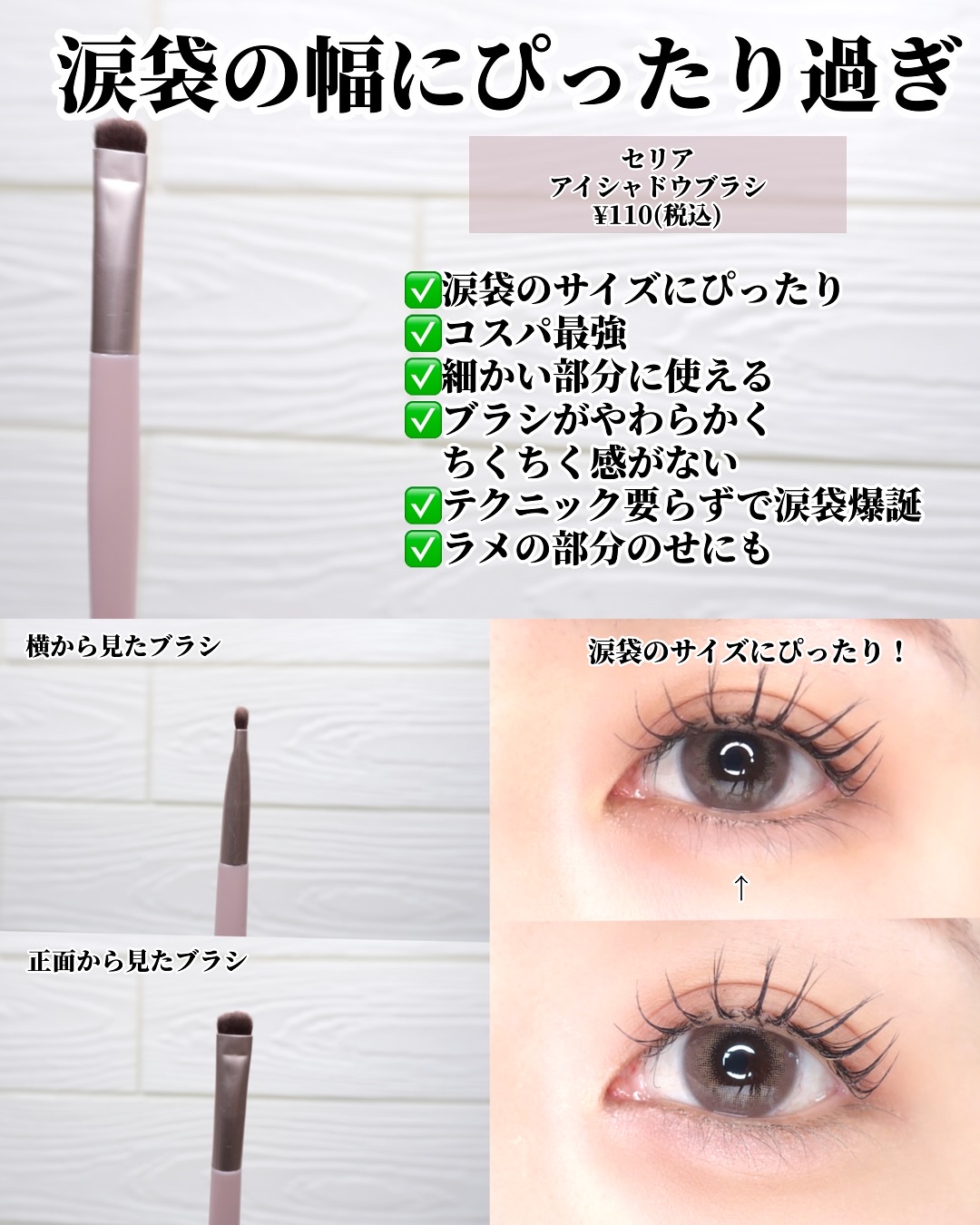 ①指でベタ塗りしない ②濃い色を広く入れすぎない ③目頭側に広く色を入れない ④下目尻は2色混ぜて使う ⑤色の境目はぼかすorラメをのせる ⑥涙袋の影は入れすぎない ⑦涙袋にラメを乗せすぎない ⑧マスカラ・グリッターはつける量を調節する ⑨マスカラのダマはコームでとかす ⑩アイラインは目尻だけ