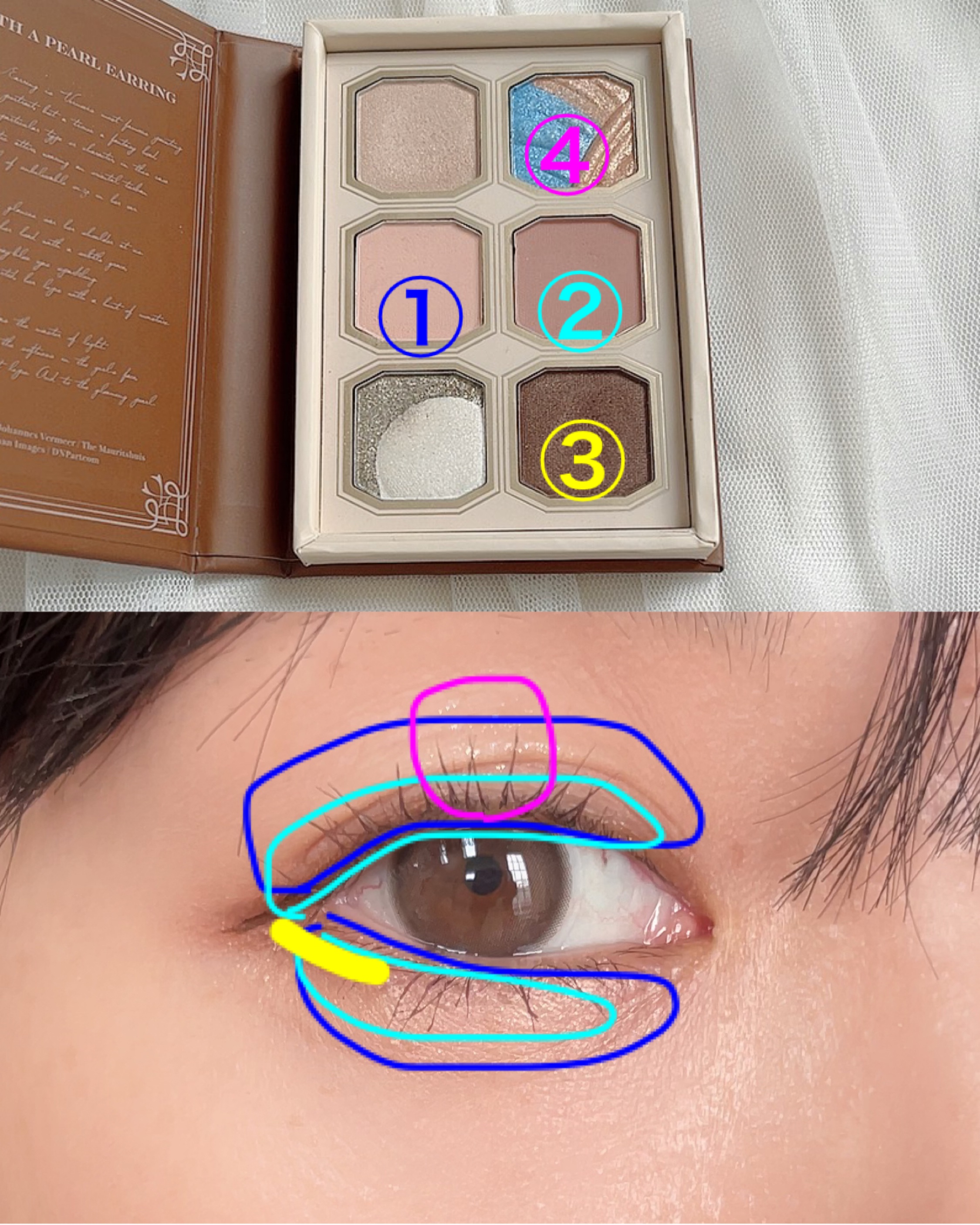 柔らかい色味と真珠やドレープのデザインが印象的なパレット。 絵画の世界観が忠実に表現されてて眼福🥹 特に左上のパール見てほしい!この光り方、まさに真珠じゃない!?💫 使いやすいかつオシャレなパレット。 絵画アイシャドウパレットはカラバリも豊富なのでお気に入りの色味が見つかるはず!
