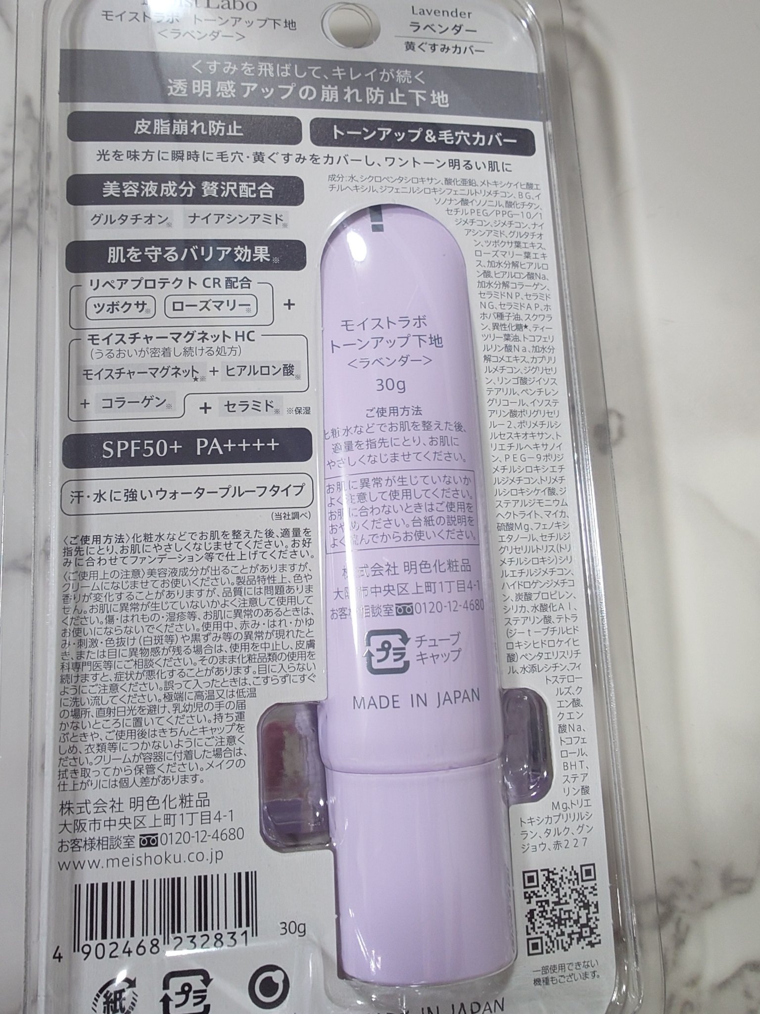 モイストラボトーンアップ下地<ラベンダー>💜▶@meishoku_corporationくすみを飛ばして,透明感をアップする崩れ防止下地🌿トーンアップ&毛穴カバー💖✔SPF50+✔PA++++光を味方に✨塗った瞬間、毛穴・黄ぐすみをカバーし、...