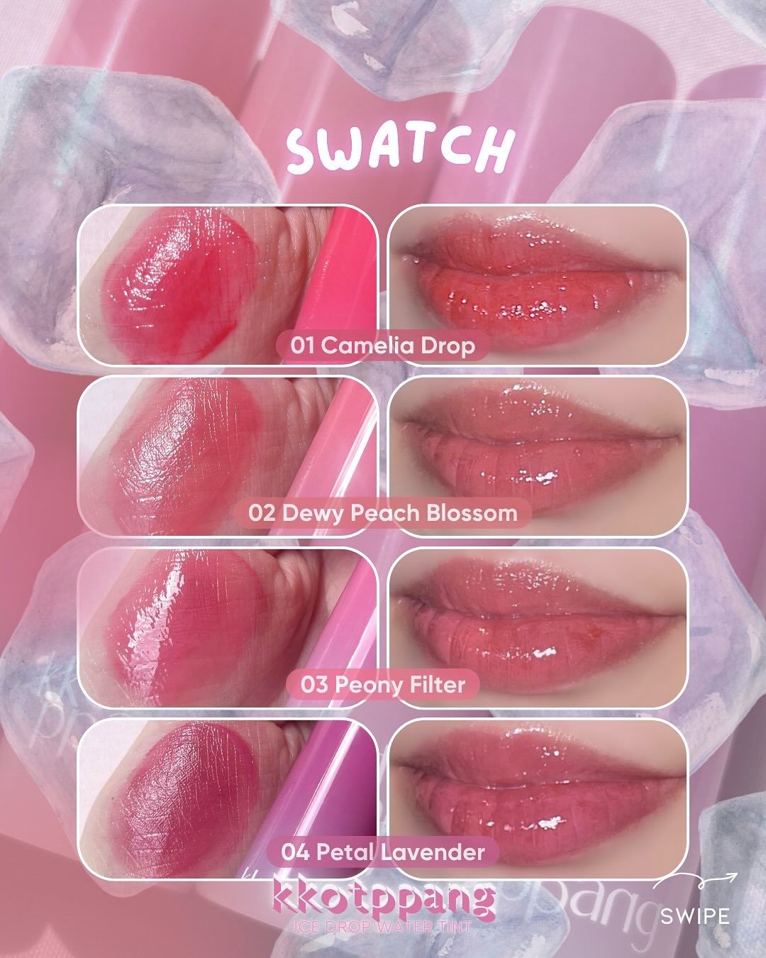 〈kkotppangコッパン💄🧊〉ICEDROPWATERTINTアイスドロップウォーターティント全4色「ロムアンド」とのコラボレーションによって誕生した🇰🇷コスメブランド冷浸花茶からインスピレーションを受けた水々しいティント🫖giftedb...