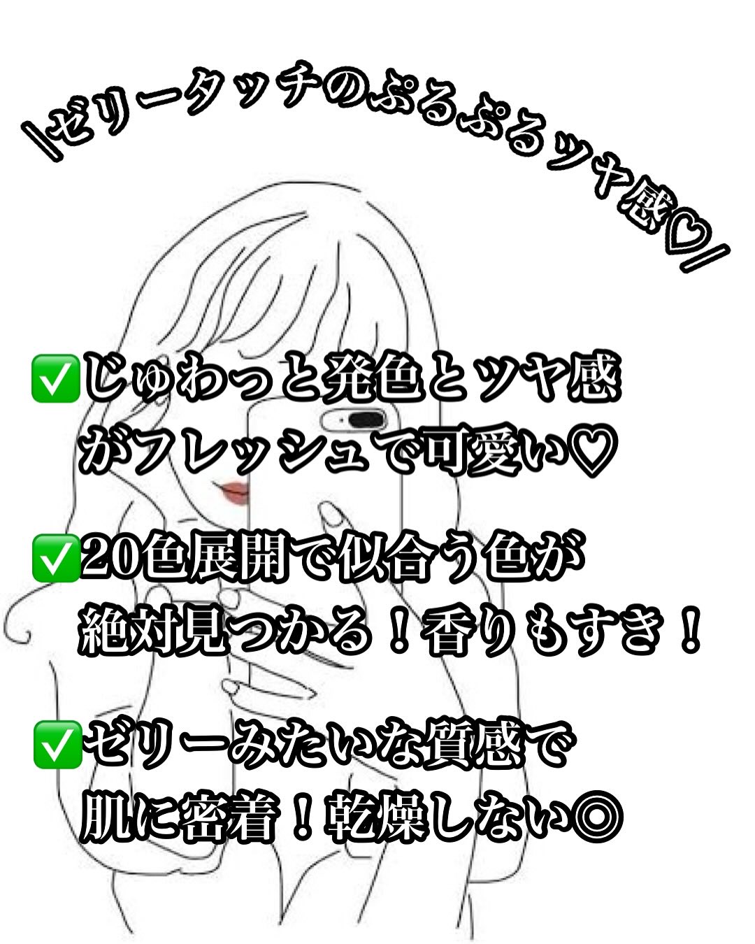 - プリンのような新感覚のチューイングテクスチャーに澄んだカラー感が加わったリップ&チーク。 ぷるぷるとしたゼリーのようなツヤ感が唇と頬にほのかに染まるウォーターリーグロウリップ&チーク。 甘いプリンのようにぷるぷるとした新感覚のチューイングテクスチャーで、べたつかず、なめらかに密着し唇にしっとりとした保湿感を与えます。 イエベ、ブルベの自分の肌トーンごとに使いやすい20色の多彩なカラーバリエーション、透明感のある澄んだカラーと鮮やかな発色、重ね塗りすればするほどあふれ出す、ほのかな水光リップへ導きます。 可愛いプリンのようなラブリーなパッケージで持ち運びが簡単!パッケージの中にはミニブラシが付いていて、衛生的に使えます。 ※ふんわりとしたゼリーテクスチャーの特徴により、固まりが生じることがありますので、薄くレイヤーを重ねて十分に塗り伸ばしてください。
