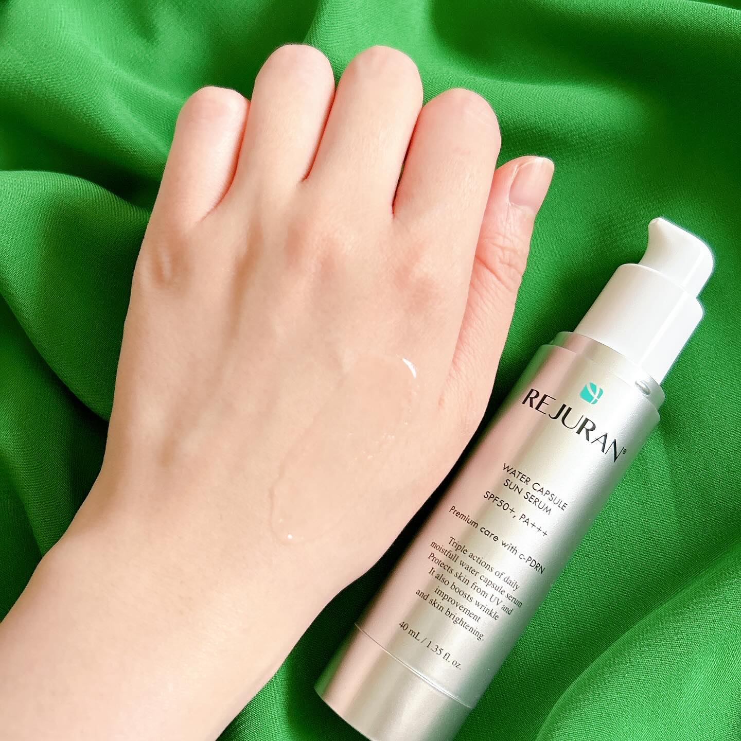 REJURANウォーターカプセルサンセラム塗る瞬間ウォーターカプセルがはじけて水分補充と紫外線カットを一気に解決できるサンケアアイテム!"え、これ美容液?"って思うくらいなのにSPF50でしっかりUVケアしてくれる◎サンクリームなのにセ...