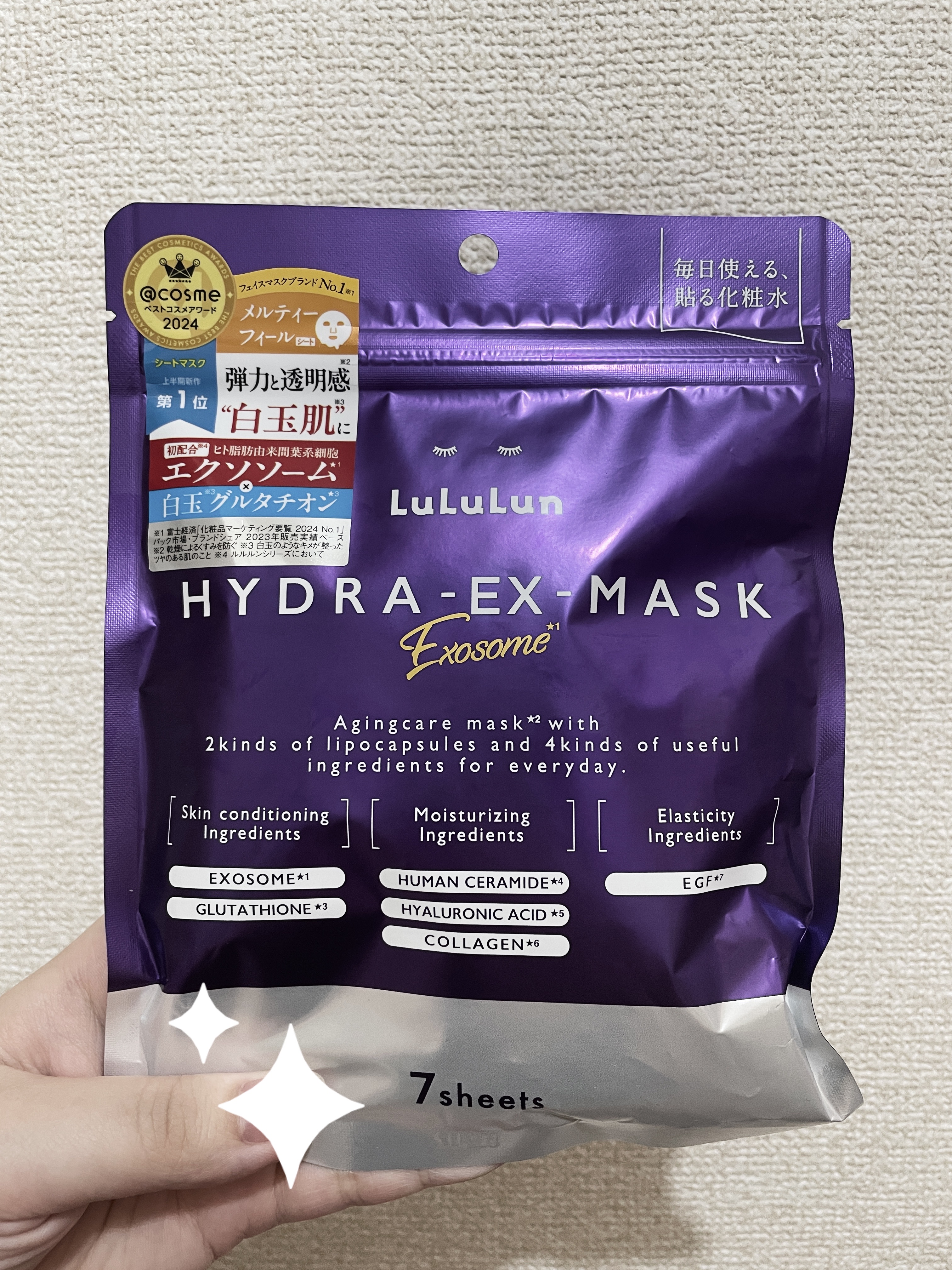 - ルルルンハイドラシリーズから新登場。うるおいにプラスするのは、「エクソソーム*1」。先端再生テクノロジーにインスパイアされた、デイリーエイジングケア※1マスクです。白玉※2グルタチオン*2をプラス配合し、弾力・透明感※3・つやめきのあるなめらかなお肌へ導きます。 (*1 整肌成分 ヒト脂肪由来間葉系細胞エクソソーム *2 整肌成分 グルタチオン、アルブチン、レシチン ※1 年齢に応じて肌へうるおいと弾力を与えるケアのこと ※2 白玉のようなキメが整ったツヤのある肌のこと ※3 うるおいを与えて、乾燥によるくすみを防ぐ)