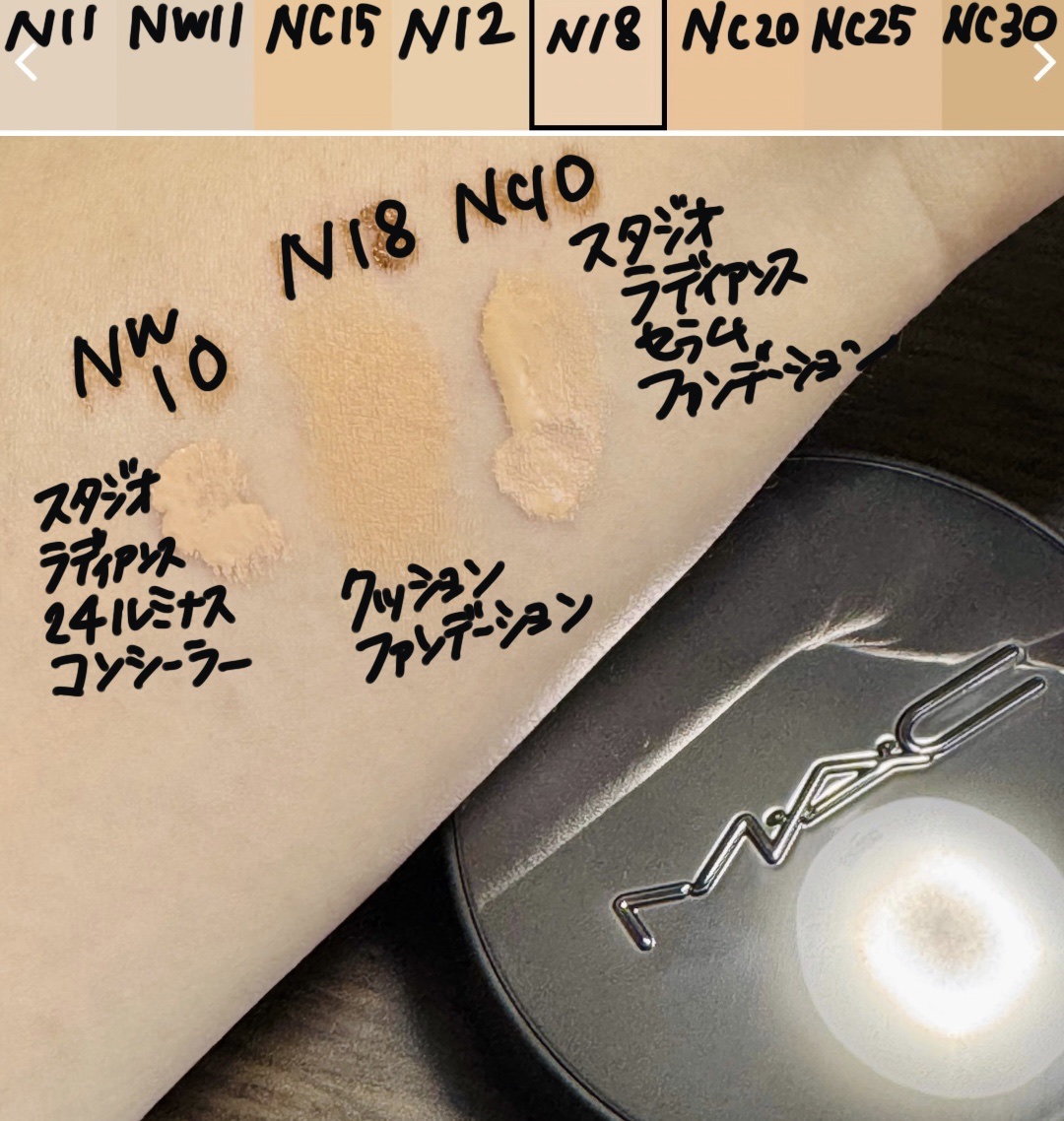 MACではNW10がおすすめ! ってことでNW10をメインカラーとして購入したのですが、伸ばすと大体似た感じです。 1日メイクしてマスクに着く具合からすると、MACのがやや持ちはいい気がします。 😳『ザセム1.25≒ディオール0.5N≒MAC NC10』😳 が驚きな感じでした!