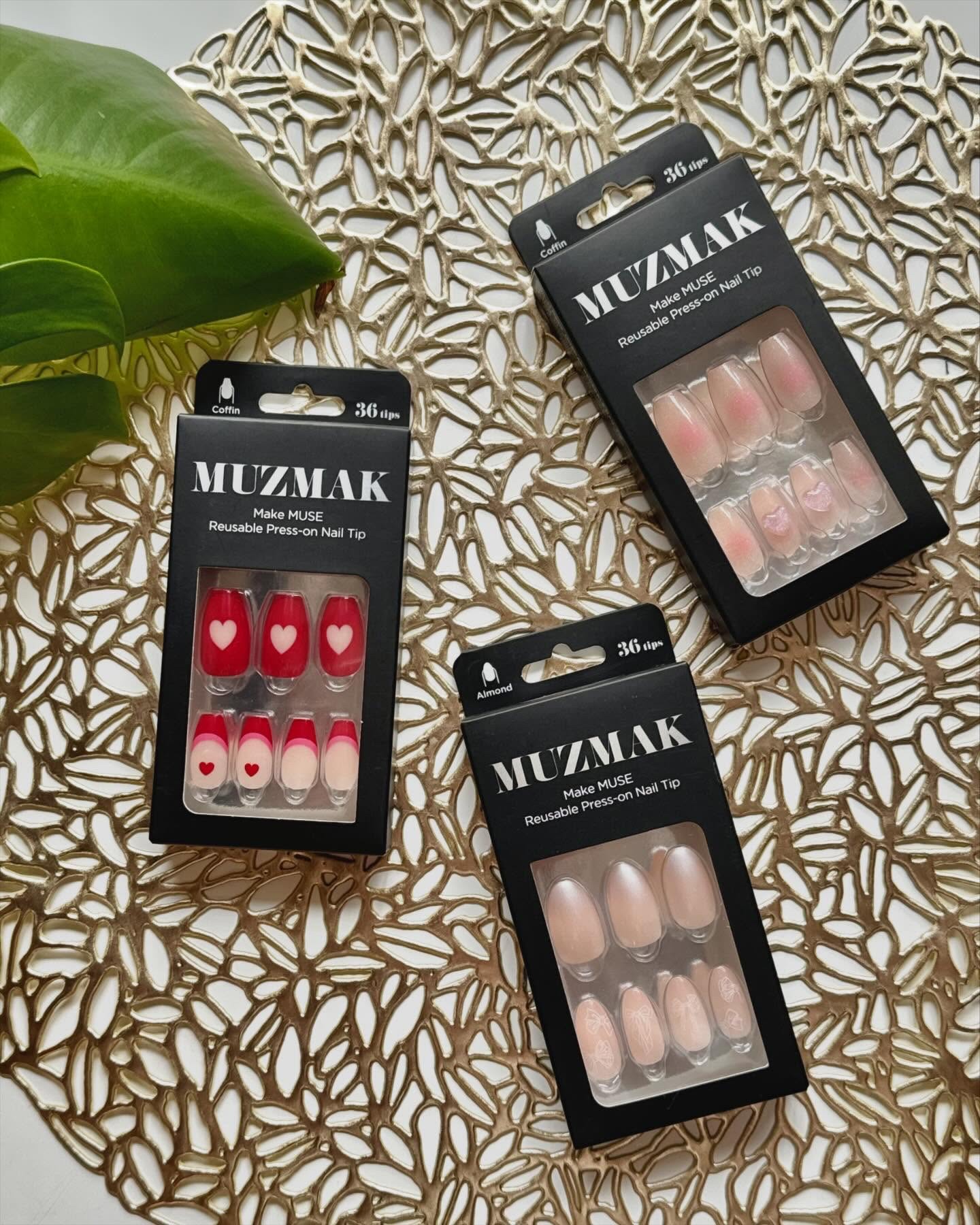 MUZMAK−ミュズマック−プレミアムリユーザブルネイルチップ・レッドポップ(コフィン)・シルエット(アーモンド)・クッキーリング(ショートスクエア)【再利用可能な韓国発の次世代ネイルチップ】多様なミュズマックオリジナルデザイン!以前他のデザ...