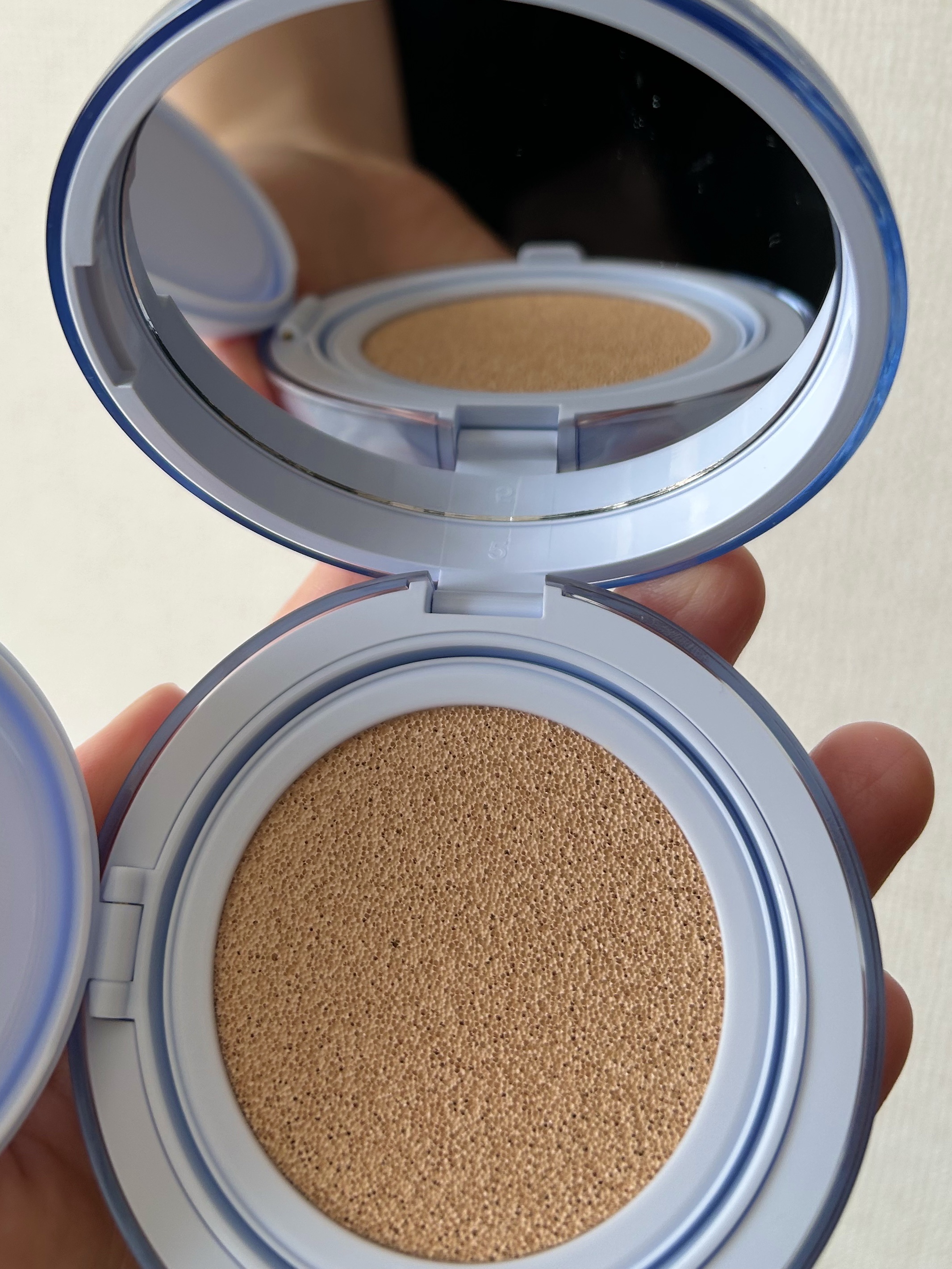 fwee フィークッションガラスナチュラル01フェアガラスQoo10で購入パケデザイン可愛い🩵💙パフがモチモチしてて付けやすい!ムラなく肌に馴染みました!ツヤ感があって良かったけど時間が経つと毛穴が見えてきたり白浮きしてきました😓崩れ方は良く...