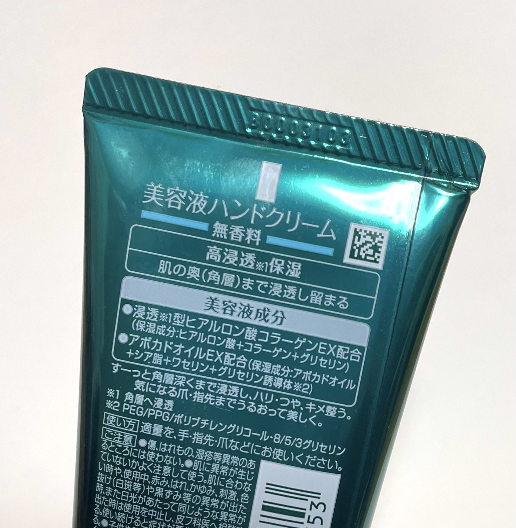 - 角層隅々まで浸透しハリ・つや、キメ整う。 気になる爪・指先までうるおって美しく。 美容液成分1.浸透*1型ヒアルロン酸コラーゲンEX配合(保湿成分:ヒアルロン酸+コラーゲン+グリセリン) 美容液成分2.アボカドオイルEX配合(保湿成分:アボカドオイル+シア脂+ワセリン+グリセリン誘導体*2)無香料。 *1角層まで *2PEG/PPG/ポリブチレングリコール-8/5/3グリセリン