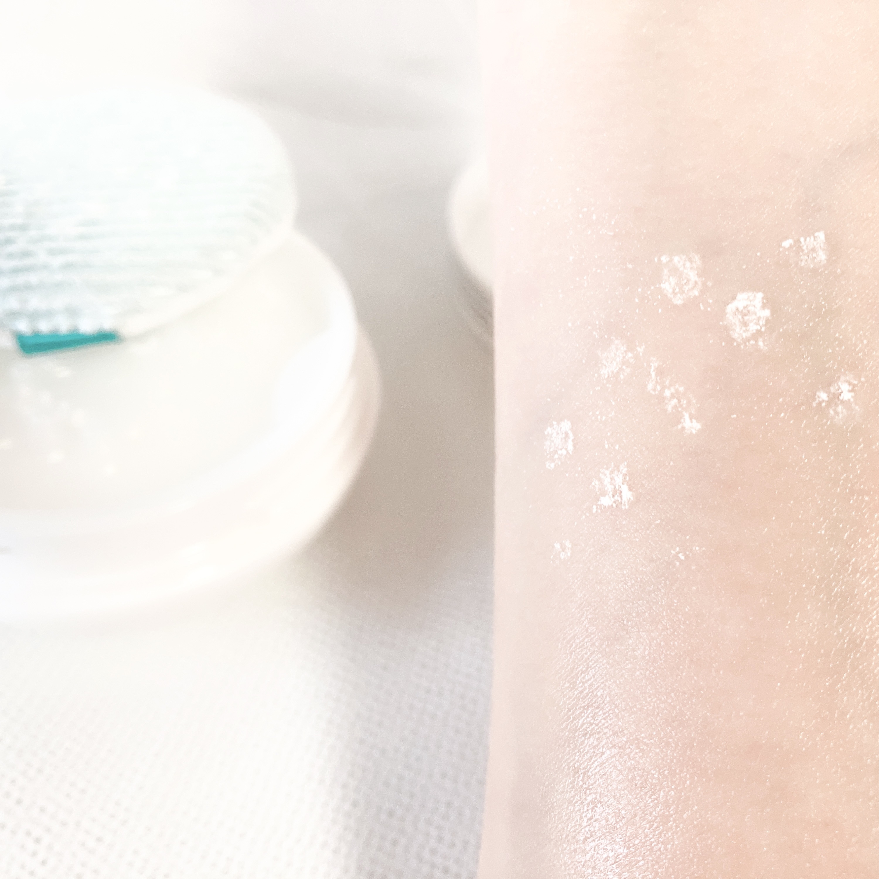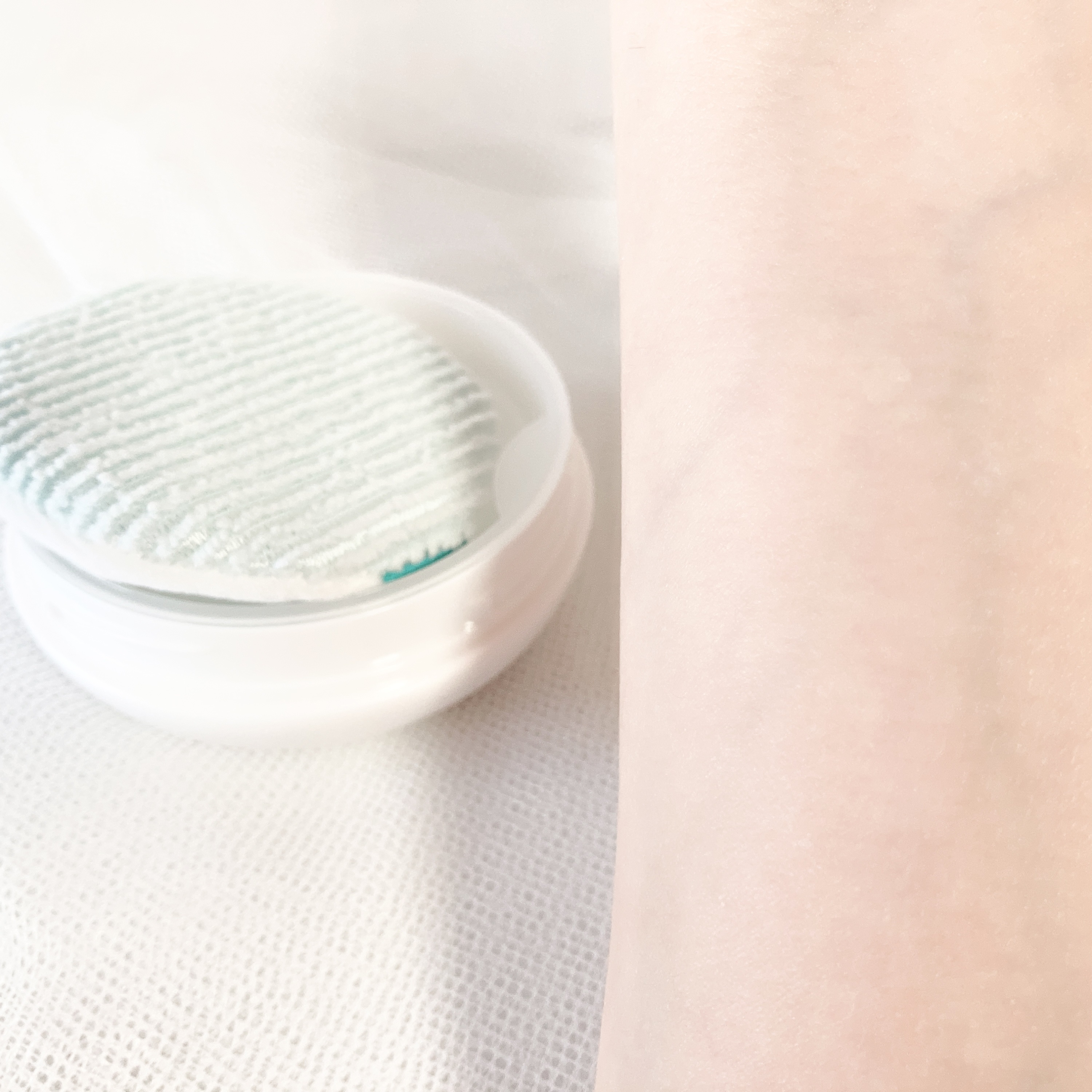 表と裏でパッドの質感にそれぞれ特徴があり、ソフトコットンの面は集中保湿パックとして、肌の気になる部分にはりつけて使います。 エンボス加工の面は、角質ケアしたいところを優しく撫でるように拭き取ります。 あごまわりなど部分的にざらつきが気になるとき、こちらを数日集中的に使うと肌がなめらかになります。 ティーツリーの香りが爽やかですし、鎮静効果もあり、ニキビ予防にも役立っていると感じています♪ 化粧水は容器にたっぷり入っていて、パッドは常にひたひた。 使用中も乾きにくいです。一枚で十分に全顔ケアできます。 お顔のケアを終えたあと、まだまだ化粧水を含んでいるな…というときは、首やデコルテを拭き取ったり、肘の角質ケアに使用しても気持ち良いです😊