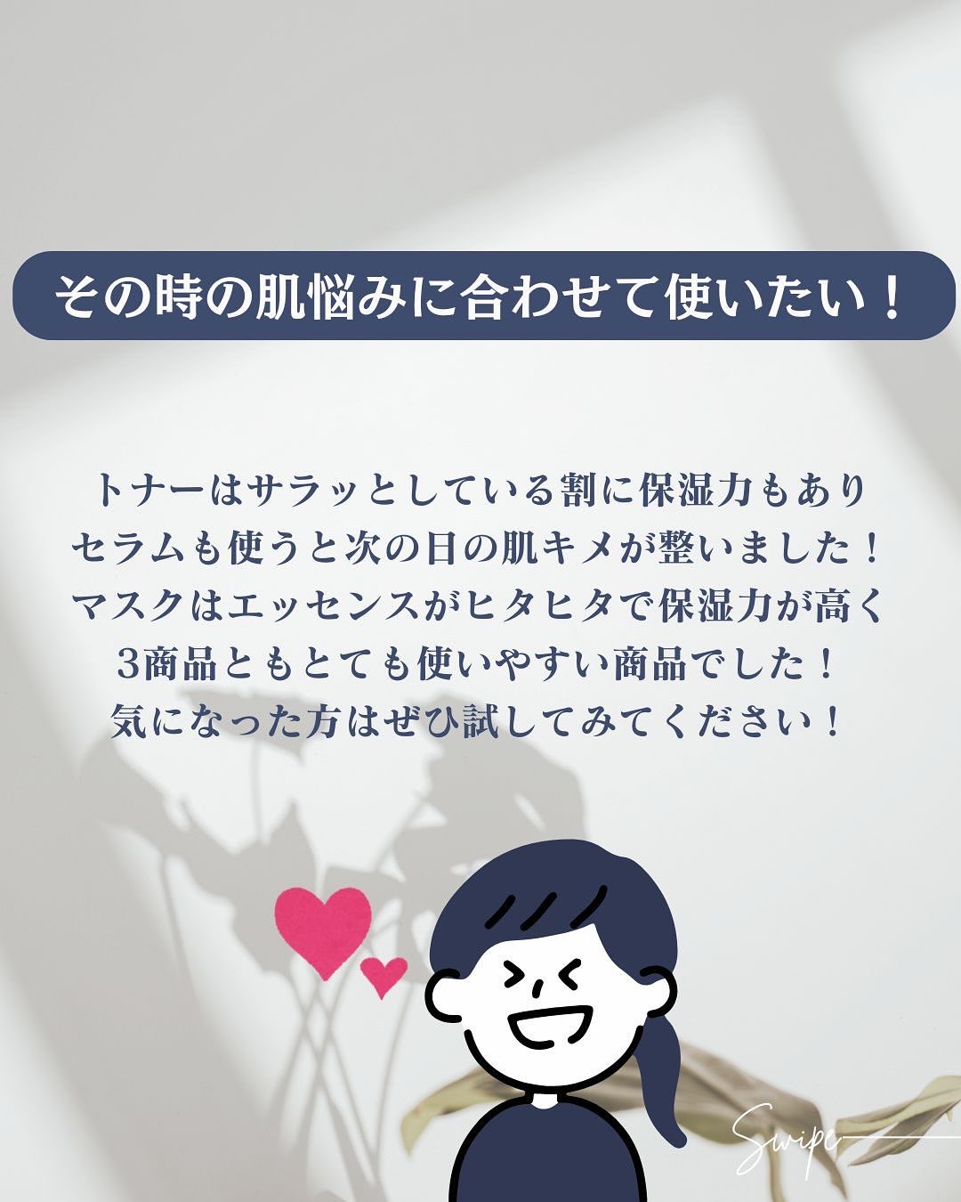 | 肌なじみよく、心地よい使用感✨ しっとりするけどベタつきません◎ | 詳細を見る | ||