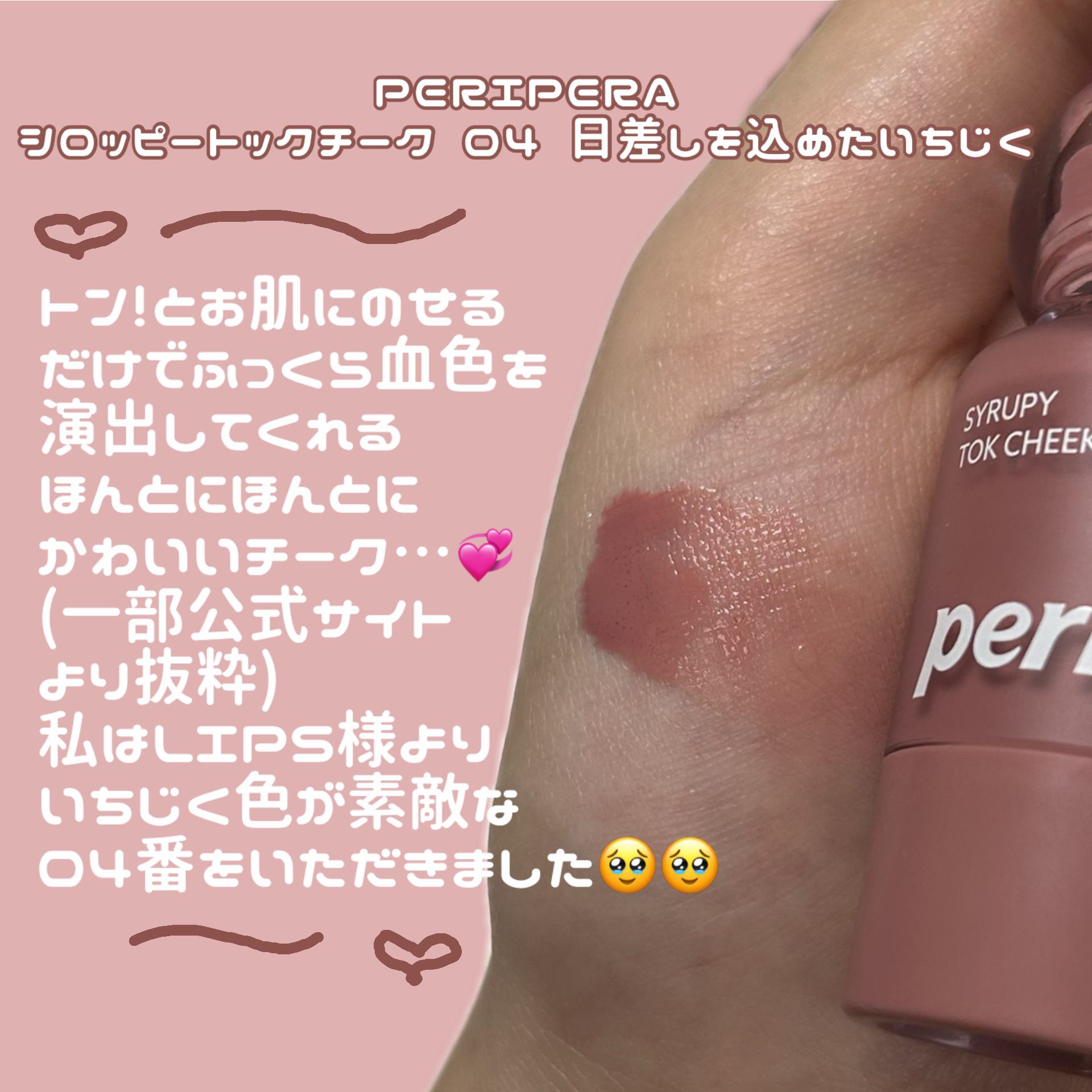 ツヤ感が最高に可愛い💖ペリペラのリキッドチークのご紹介です😌··•••✤•••····•••✤•••····•••✤•••··PERIPERAシロッピートックチーク04SUNSHINEFIG¥1,540🌟LIPSのプレゼント企画で頂きました🙇...