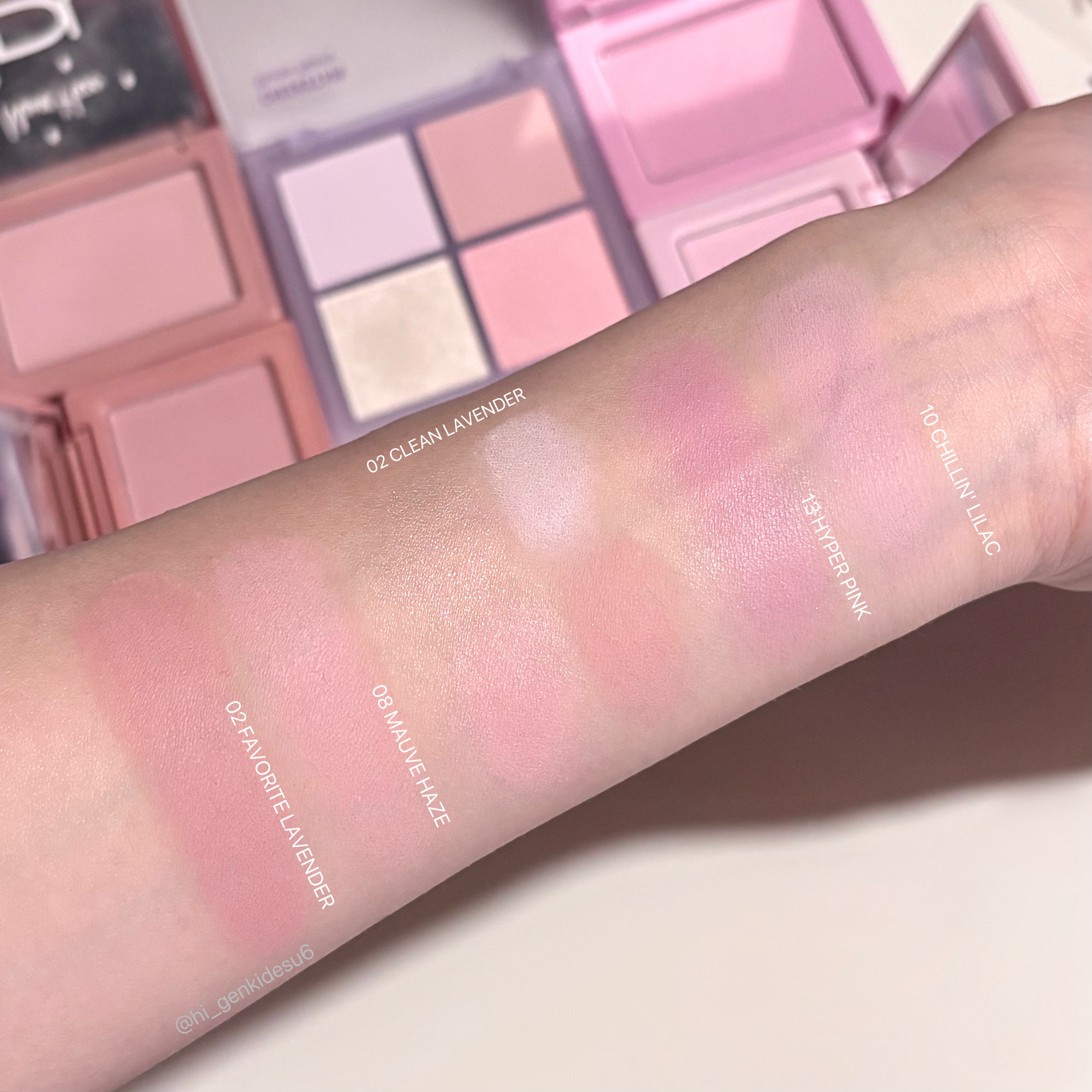 ぬるい温度のヌーディローズ。落ち着いた独特の雰囲気。公式写真だと青み寄りのローズピンクに見えましたが、私の肌だとアプリコットオレンジのような発色に。 清楚なラベンダーとミュートピンク。こちらは期待通りのクールトーンカラーでした! 白みのある発色で、塗った箇所がぱっと明るくなります。 簡単に統一感のあるメイクができてとっても優秀。色々な質感を試せますし、マルチに使用できるので1つでかなり活用度が高いパレットだと思います✨️