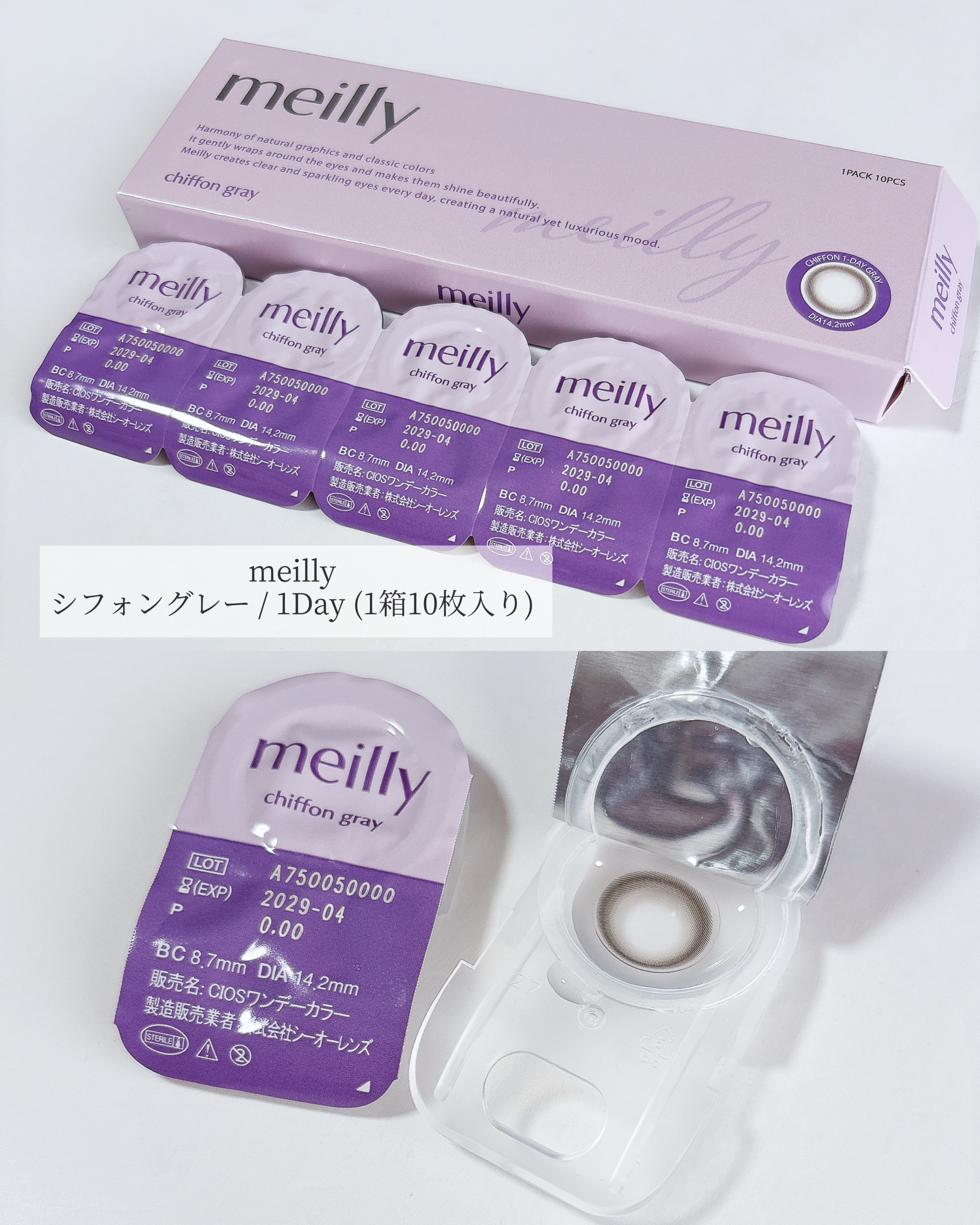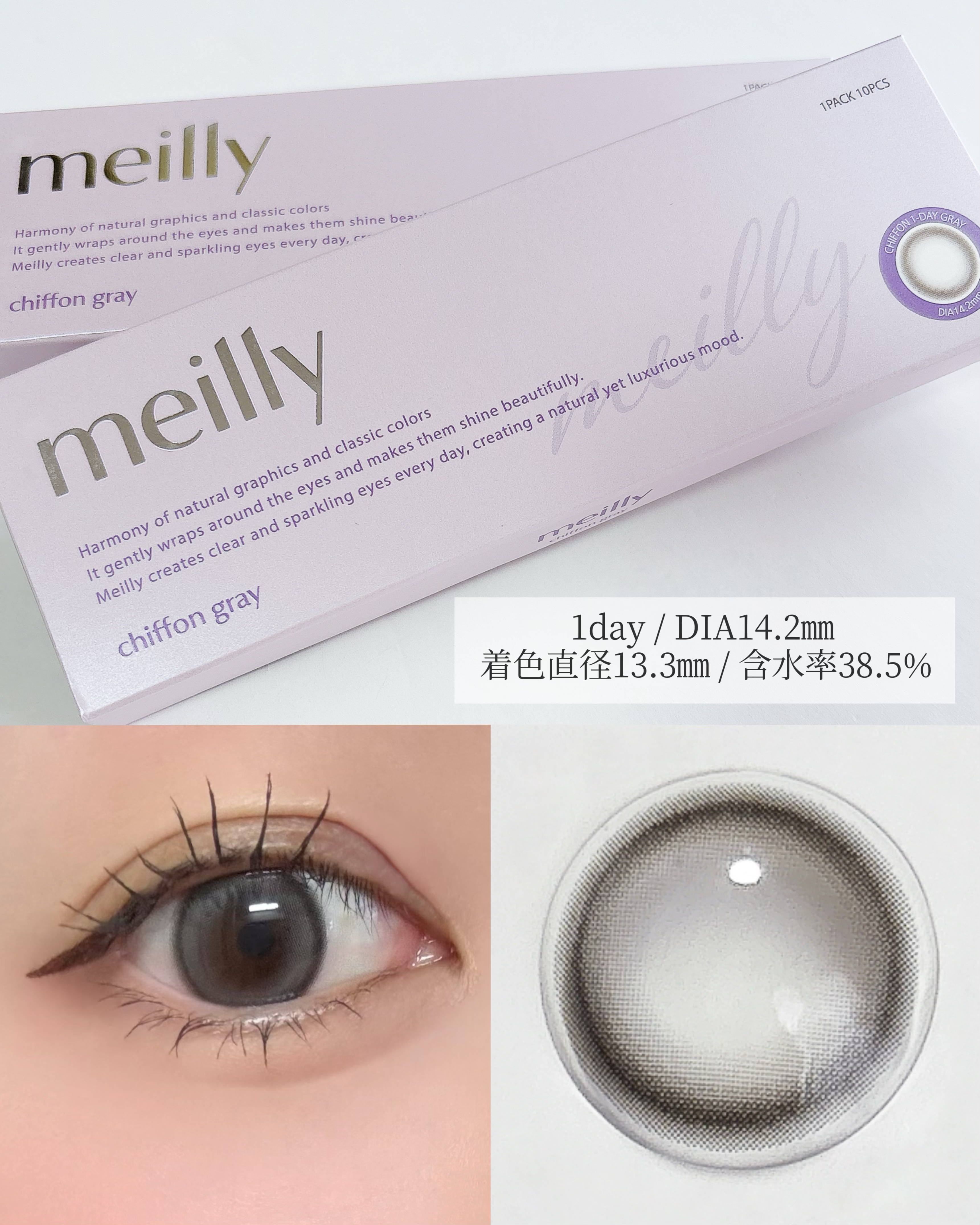 森香澄さんイメモカラコン🩷meillychiffonシリーズ💜瞳にシフォンドレスをかぶせたようなカラコン🥰自然なグラデーションぼかしフチで瞳に柔らかい雰囲気を🫶今回試してみたカラーはchiffongray🩶強すぎないグレーカラーだから、グレー...