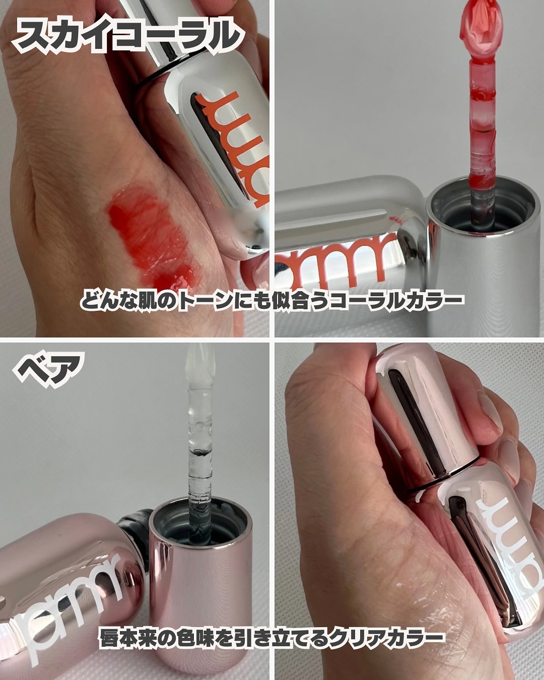 夏っぽぷるぷる透け感リップ🌻primeraのレチノールボリュームリップセラムベアとスカイコーラルをスウォッチ🌸✨️primeraプリメラレチノールボリュームリップセラムスカイコーラル(販売名RVリップセラムスカイコーラル)レチノールボリューム...