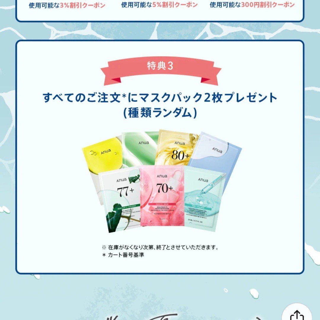 Anuaドクダミ70デイリーリリーフローションお気に入りのアヌアのデイリーローションがQoo10でお安くなっていたので購入しました!おまけで桃70%ナイアシンシートマスクとドクダミ77%鎮静マスクパックを2枚セットで頂きました!アヌアのパック...