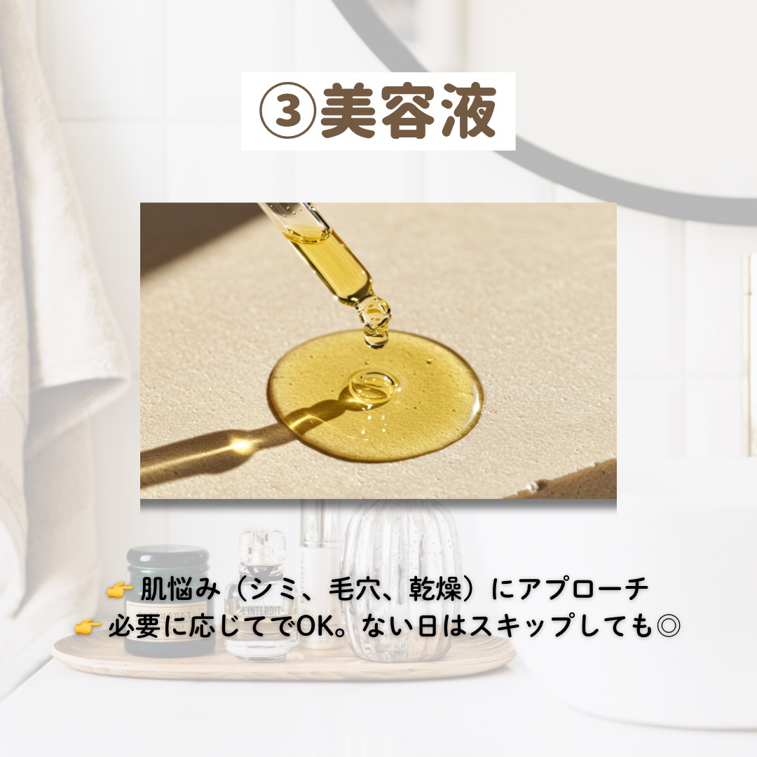 個人的なポイントは拭き取り化粧水と化粧水で2種類使うところですかね…🫧化粧水のタイプで最近発売したアクアレーベルはとてもしっとりを選んで保湿に特化させてます🍀*゜ また、リードルショットは3日に1回ペースで肌に無理せず使用してます✋ あまり気難しく考えなく気楽にお肌と向き合うのが1番です😉