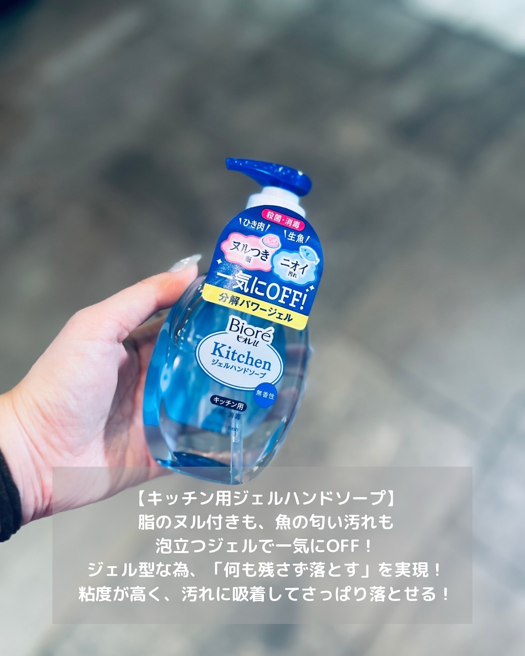 【提供】\しっかり落ちてお肌には優しい💙/○ビオレuキッチンジェルハンドソープこちらはCCJ様のイベントで紹介していただいたもの☺お肉やお魚を触ったあとの手強い油汚れやニオイをジェルが吸着し一気にオフしてくれます🙌出した時はジェルなんだけど、...