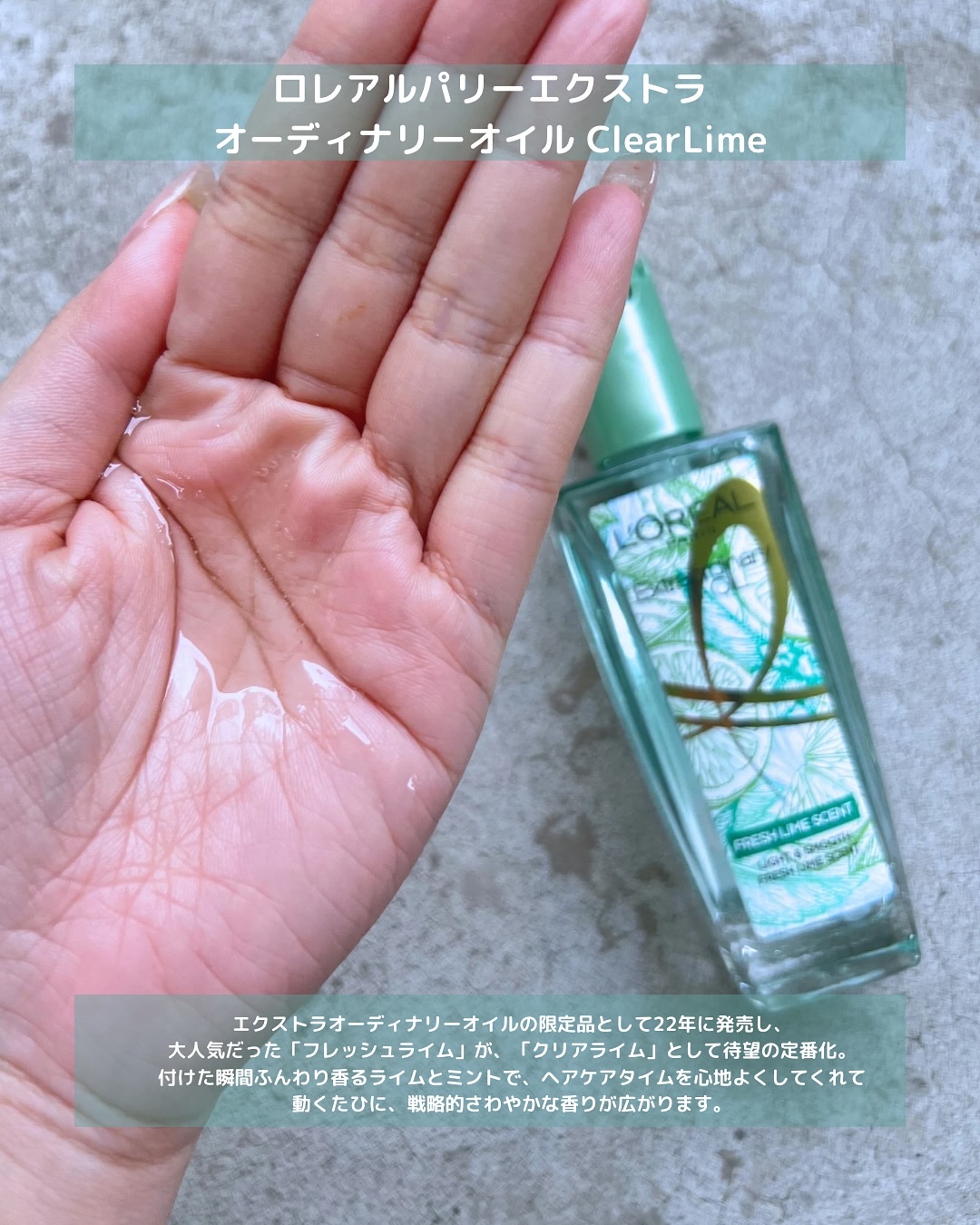 ロレアル様のプロモーションに参加しています♡こんにちは女子力高めたい5児ママゆかこです「大人気限定フレグランスが帰ってきた」└22年に発売し大人気だった香りが、「クリアライム」として待望の定番化!#ロレアルパリ_エクストラオーディナリーオイル...