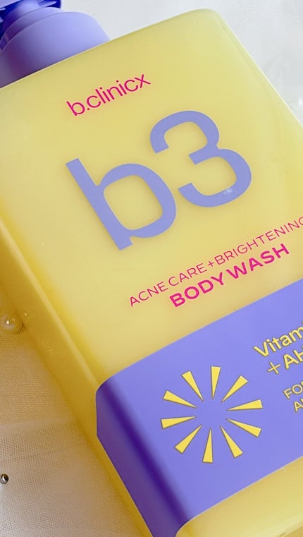 ビークリニックスB3アクネクリアボディウォッシュナイアシンアミド2%配合。身体を洗うだけで肌印象が明るくなる✨ボディーソープ。黄色い粒々はビタミンC誘導体カプセル+グルタチオンカプセル。泡立ちが良くて爽やかなレモンの香りがします🍋...
