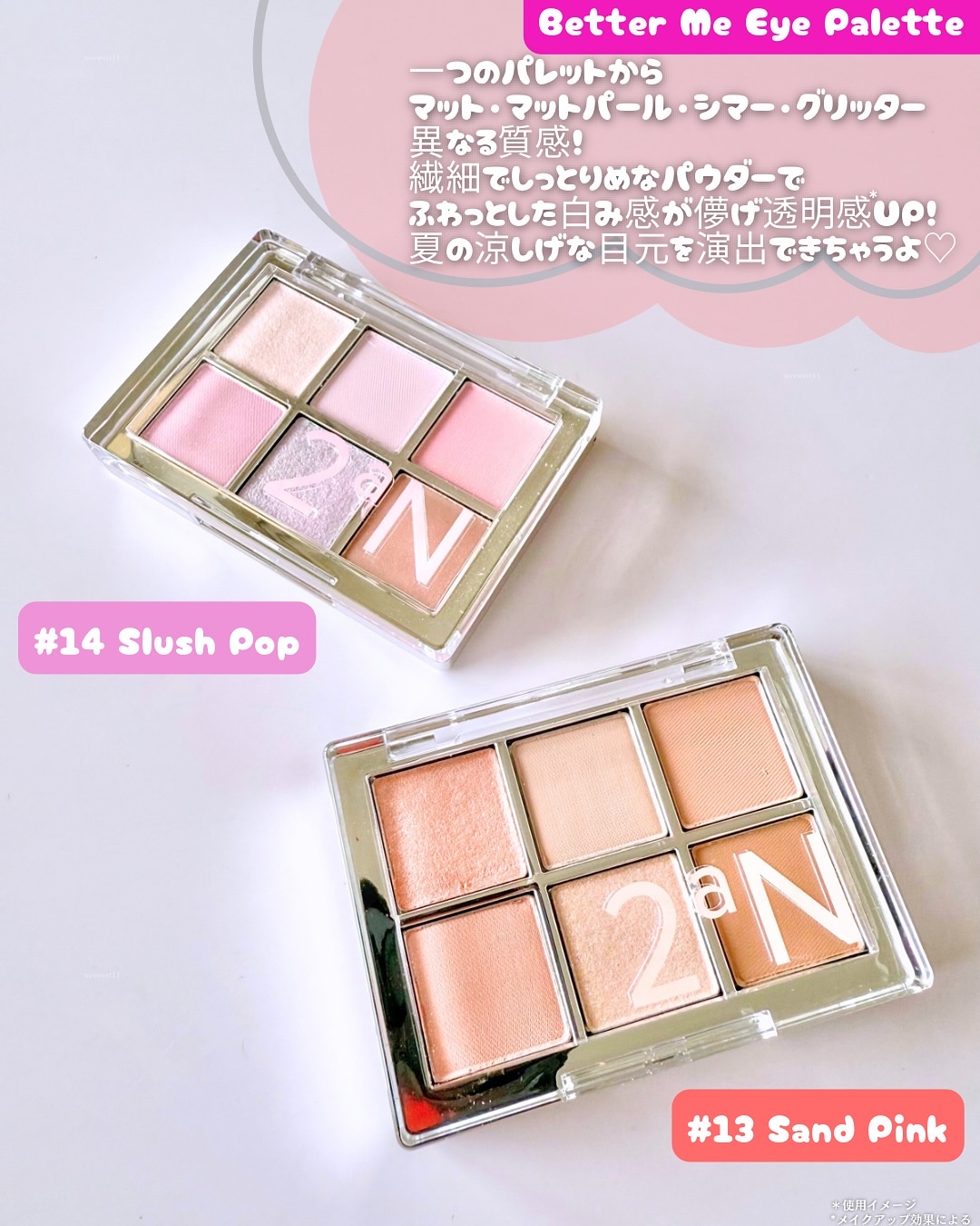 2aNの夏コスメが可愛い~🫶🏻海辺のきらめきと清涼感を盛り込んだBeginningofSummerCollection2aNベターミーアイパレット13サンドピンク/14スラッシュポップデュアルチーク15マンゴーベリーピュアグラッシュハイライ...