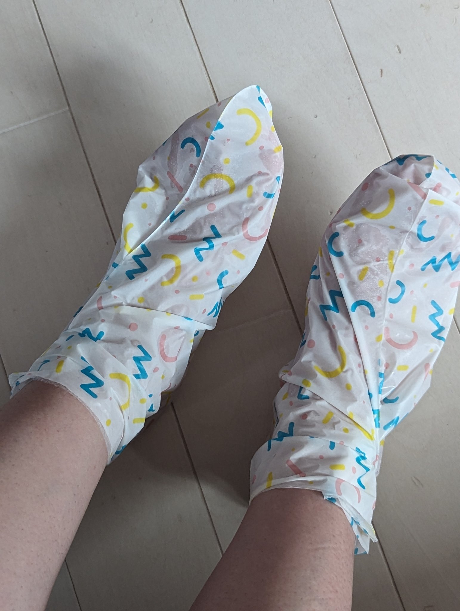 MADFORCOSシルキーココナッツオイルフットマスク5枚入り/¥1,800履くだけで簡単にケアできるフットマスク🦶✨15分ほど使っただけで、かかとがしっとり柔らかくなる!今は夏だから残りは冬の乾燥時期に使いたい👶🏻液がたっぷり入っていて足全...