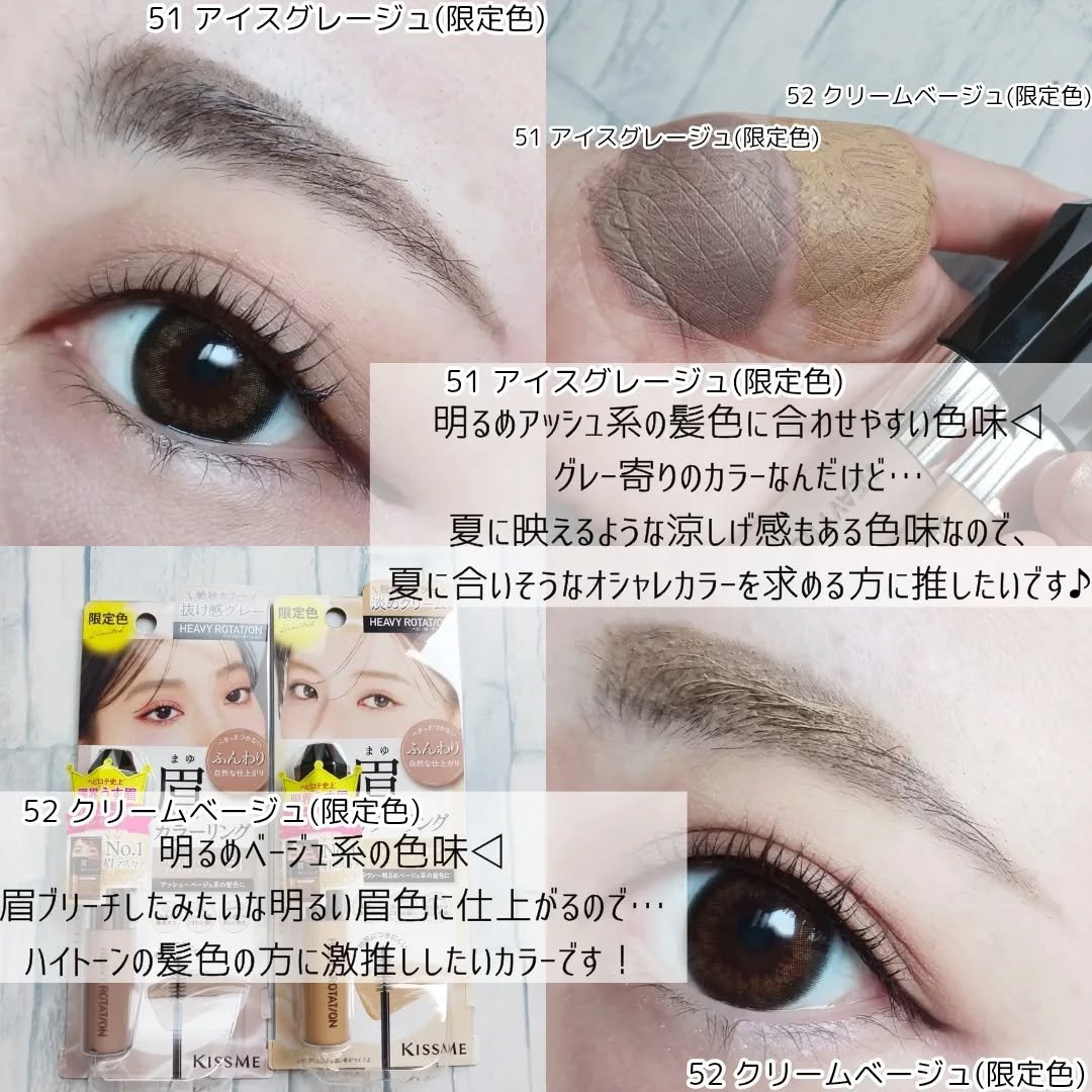 ヘビーローテーションさまからいただきましたヘビーローテーション カラーリングアイブロウEX 限定色をお試しさせていただきました。程よいコシのあるブラシで、眉毛にすっとなじませることが出来ます。ふんわりと自然になじんでくれるのが嬉しい。お試しさ...