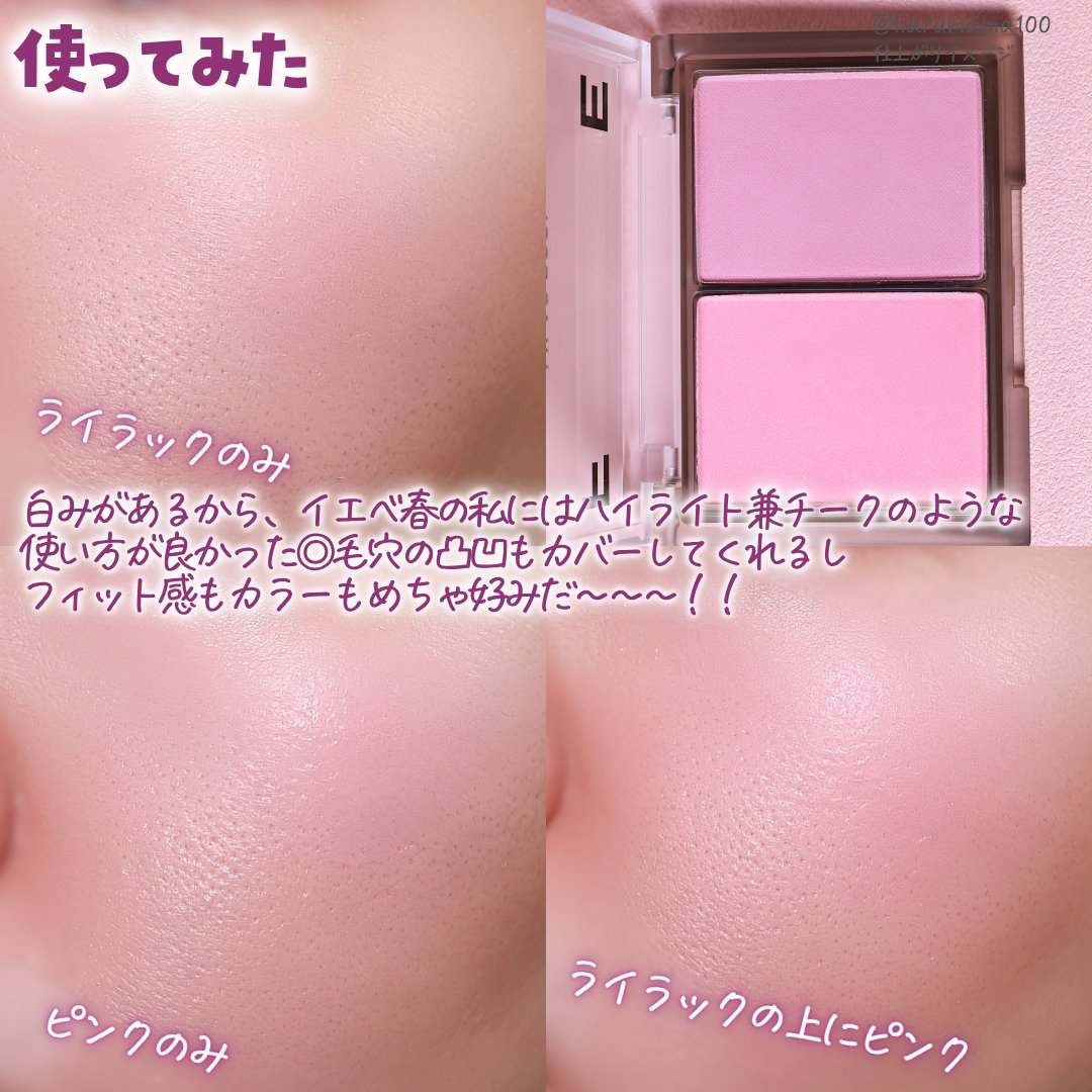 意外と肌なじみがいいんですね…! 色味が2種類あるとピンクメイクとパープルメイクでそれぞれ使うのも良さそうです✨