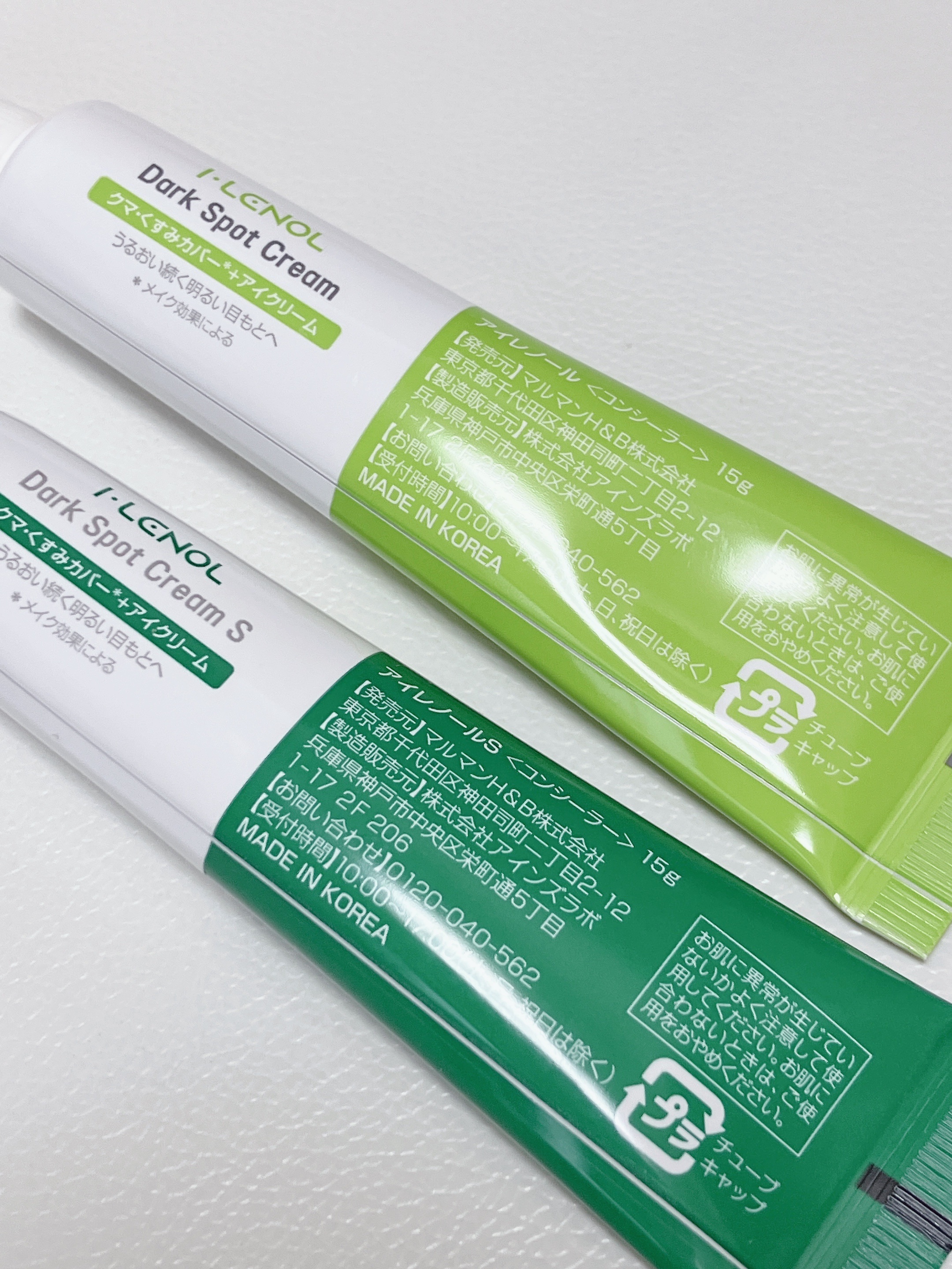 - <アイレノール クマクリーム> 水、シクロペンタシロキサン、グリセリン、ナイアシンアミド、ツボクサ葉エキス、サンゴエキス、パンテノール、イソヘキサデカン、ヒドロキシエチルウレア、ジメチコノール、アラントイン、グリチルリチン酸2K、プロパンジオール、カプリルヒドロキサム酸、香料、オリーブ果実油、酢酸トコフェロール、ホホバ種子油、オレイン酸ソルビタン、アルガニアスピノサ核油、アデノシン、エチルヘキシルグリセリン、プルラン、ヒアルロン酸Na、EDTA-2Na、トリデセス-6、DNA-Na、(アクリル酸グリセリル/アクリル酸)コポリマー、リノール酸グリセリル、ペンチレングリコール、リノレン酸グリセリル、アラキドン酸グリセリル、パルミチン酸レチノール、ラウリン酸K、ピーナッツ油、ヒアルロン酸クロスポリマーNa、トマト果実エキス、ブロッコリーエキス、ケール葉エキス、キャベツ葉エキス、チャ葉エキス、レモン果実エキス、アスパラガスエキス、フラガリアチロエンシス果実エキス、カキ葉エキス、トウガラシ果実エキス、水溶性プロテオグリカン、アスタキサンチン、ヒアルロン酸、トコフェロール、パルミチン酸アスコルビル、酸化チタン、酸化鉄、他 <アイレノール クマクリームS> 水、シクロペンタシロキサン、グリセリン、ナイアシンアミド、ツボクサ葉エキス、サンゴエキス、パンテノール、イソヘキサデカン、ヒドロキシエチルウレア、ジメチコノール、アラントイン、グリチルリチン酸2K、プロパンジオール、カプリルヒドロキサム酸、香料、オリーブ果実油、酢酸トコフェロール、ホホバ種子油、オレイン酸ソルビタン、アルガニアスピノサ核油、アデノシン、エチルヘキシルグリセリン、プルラン、ヒアルロン酸Na、EDTA-2Na、トリデセス-6、DNA-Na、(アクリル酸グリセリル/アクリル酸)コポリマー、リノール酸グリセリル、ペンチレングリコール、リノレン酸グリセリル、アラキドン酸グリセリル、パルミチン酸レチノール、ラウリン酸K、ピーナッツ油、ヒアルロン酸クロスポリマーNa、トマト果実エキス、ブロッコリーエキス、ケール葉エキス、キャベツ葉エキス、チャ葉エキス、レモン果実エキス、アスパラガスエキス、フラガリアチロエンシス果実エキス、カキ葉エキス、トウガラシ果実エキス、水溶性プロテオグリカン、アスタキサンチン、ヒアルロン酸、トコフェロール、パルミチン酸アスコルビル、酸化チタン、酸化鉄、他